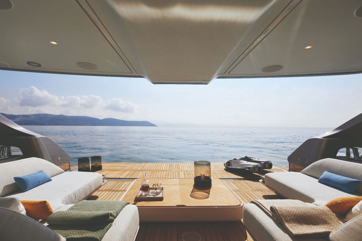 The very quintessence of innovation, Azimut Grande Trideck features a new living area, never seen before on a yacht this size: the Sea View Terrace. As the latest addition to the traditional tripledecker, the Sea View Terrace is an aft raised "mezzanine" deck. Thanks to this layout innovation, Grande Trideck offers four terraces, completing a visual effect of cascading terraces from the Sundeck down to the sea.