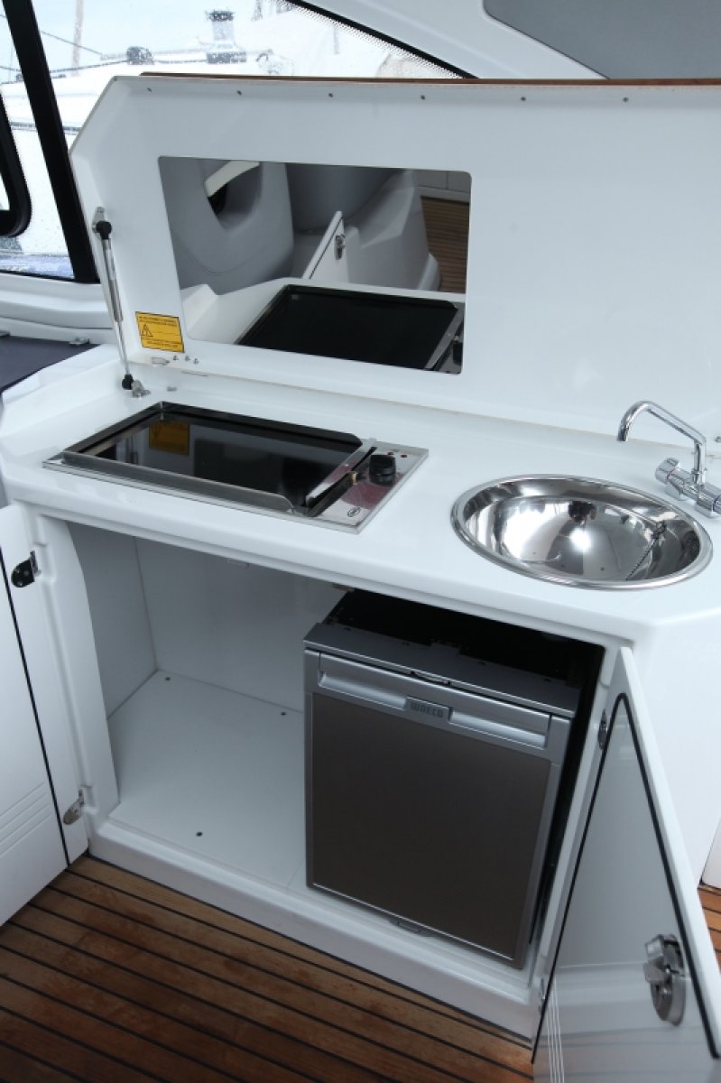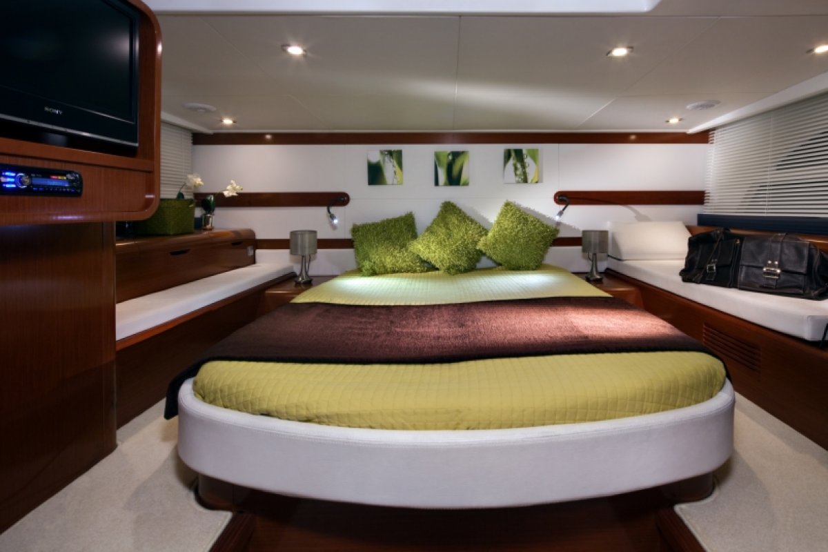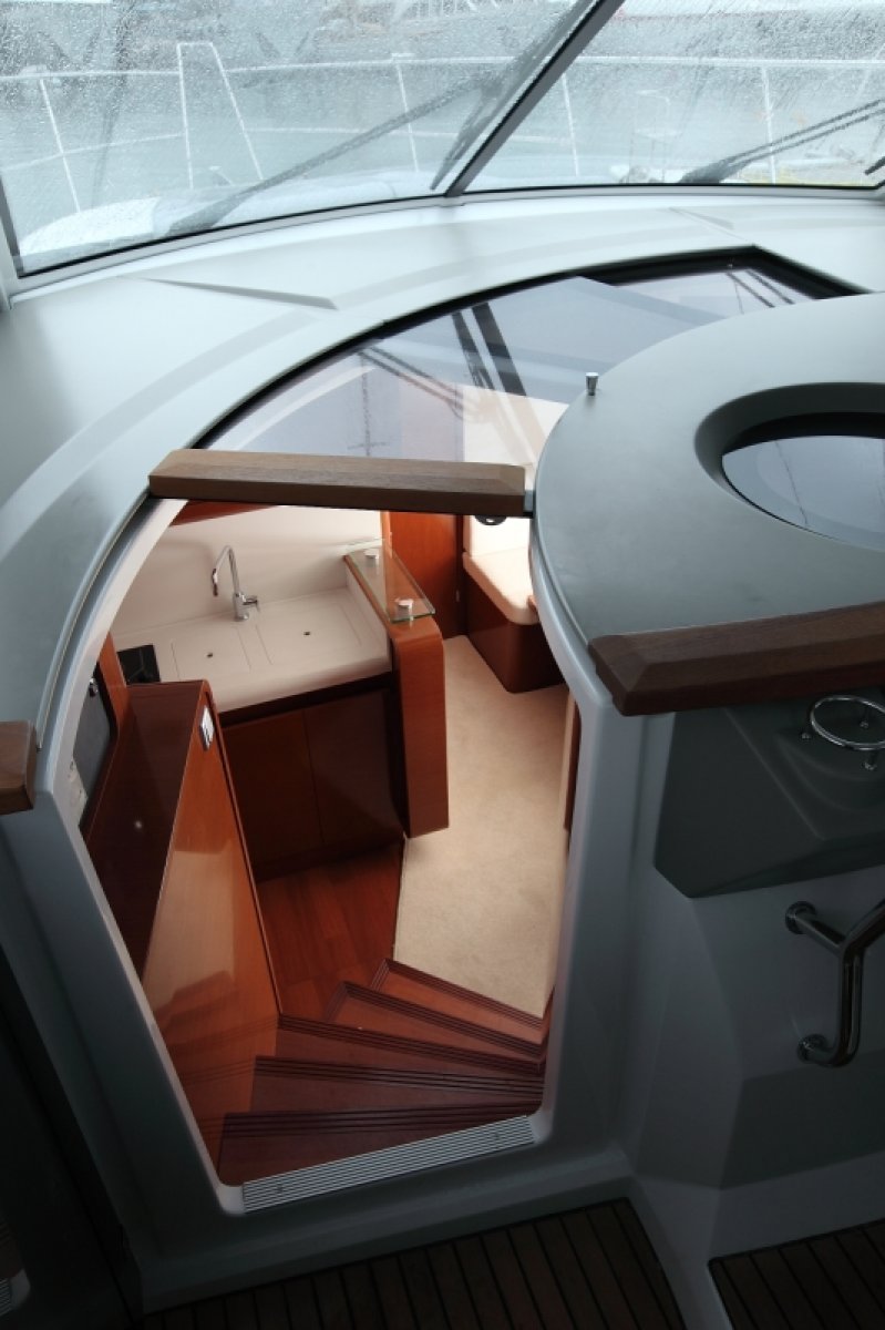 Her remarkable Air Step* hull associated with Stern Drive propulsion (2x370 HP Volvo D6) gives her amazing stability, great seakeeping, acceleration that is as powerful as it is fluid, and makes manoeuvring easier, optimized using the Joystick on the instrument panel.