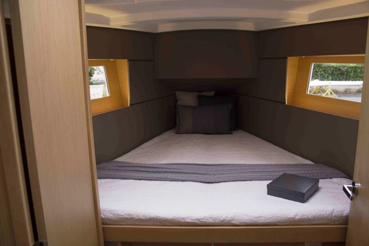 The chined hull by the architects Finot-Conq stands for comfort and good balance under sail, making a particularly noteworthy entry into the market for this size of boat.