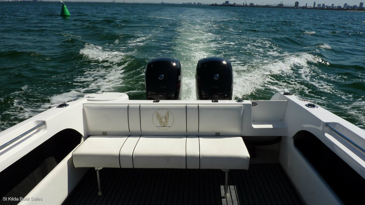 We welcome the new Caribbean 2300. Modern styling, clean lines yet retaining the classic deep V-hull with a fine entry. Incredible stability at rest, with renowned Bertram seaworthiness, she is towable nationally without permits and without restriction 24-7. The 2300 comes fitted with a Fiberglass Hardtop, Transom Door, Lockable Cabin, Toilet and Anchor Windlass all as standard. Engine choices; D. I. Y (no engine), Single OR Twin Outboard engine packages available. Towable behind the family 4x4, with one of our optional MacKay Trailers. Ask us to configure a package that suits your needs and budget! NOTE: This is our D. I. Y package, conditions apply.