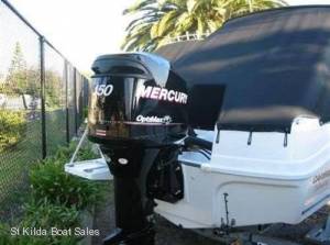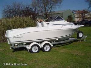 A modern half cabin with Fibreglass HardTop and a spacious cockpit makes this exceptional for game fishing and family outings. She is well-appointed, making the Cavalier a perfect boat, no matter what your boating lifestyle. The Caribbean Cavalier powered by the economical Mercury OptiMax 150hp Outboard, together with a quality MacKay Trailer, she is ideal for safe family boating. A full range of options and Caribbean new boat packages are available.