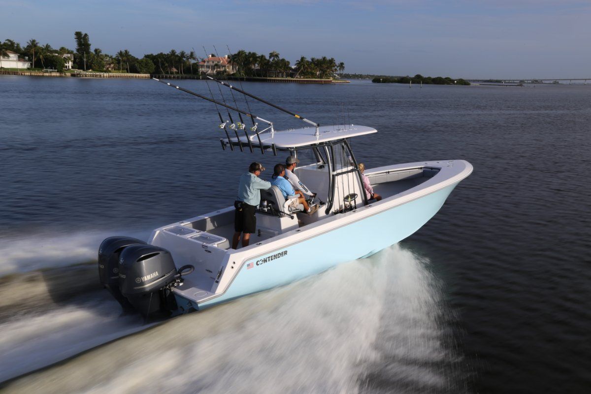 Twin engine performance is standard with twin 150,200,250, and 300HP engines an option. The Contender 30 ST is built to fish and make the worst of conditions seem like a light breeze.