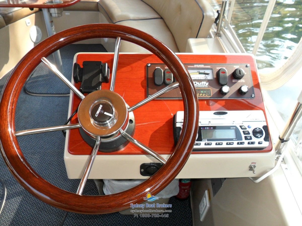The Duffy patented "PowerRudder" drive system offers complete control in the tightest of spaces and makes boating fun and attainable for everyone. This system includes an Info-speed drive controller, smart charge battery charging system, non-corrosive hydrodynamic rudder and Patented Four-blade Weedless Composite Propeller. The end result is a very safe vessel which exhibits extremely high manouvreability - in fact she can virtually turn around in her own length!