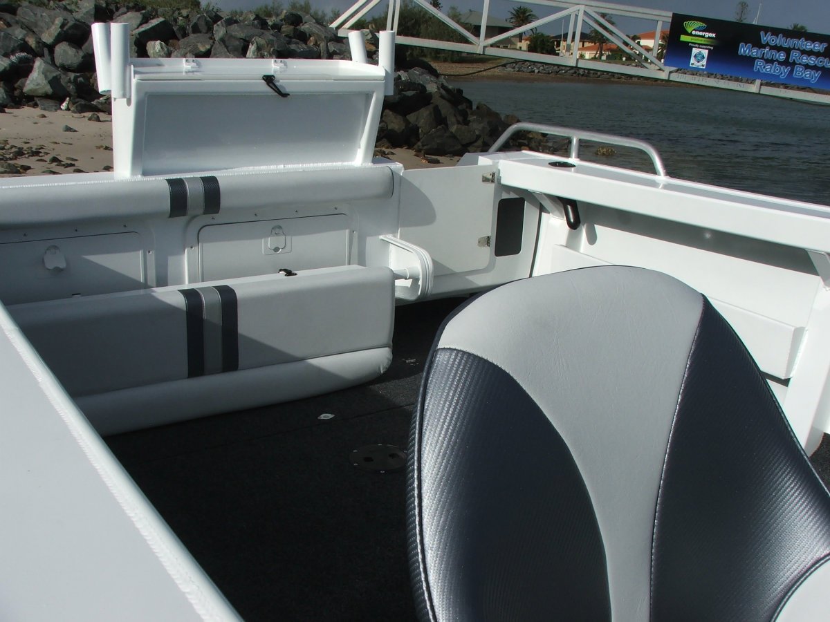 FORMOSA 550 TOMAHAWK RUNABOUT, 115HP EVINRUDE ETEC AND TRAILER. THESE ARE THE TOP OF THE LINE IN THE FORMOSA PLATE RANGE OF BOATS. IF YOU WANT THE BEST THEY MAKE THEN THESE ARE FOR YOU. 4MM PLATE BOTTOMS, 12 MONTHS QLD BOAT AND TRAILER REGO, INSHORE SAFETY GEAR AND FISHFINDER. BIG & BEAMY. ALUMINIUM SELF DRAINING DECK, REVERSE CHINE HULL, LARGE FUEL CAPACITY. MANY FACTORY FEATURES INCLUDING TRANSOM DOOR WITH LADDER, ENCLOSED BATTERY SHELF, HYDRAULIC STEERING. GREAT OFFSHORE BOAT MADE TO WITHSTAND THE ELEMENTS. FEATURES SUCH AS FULLY WELDED SIDE DECKS, REINFORCED FLOOR STRUCTURE & INTERNAL TRANSOM WELDS MAKE THE FORMOSA TOUGHER THAN YOUR TRADITIONAL TINNY. THE TOUGHEST PLATE BOATS IN THERE CLASS.