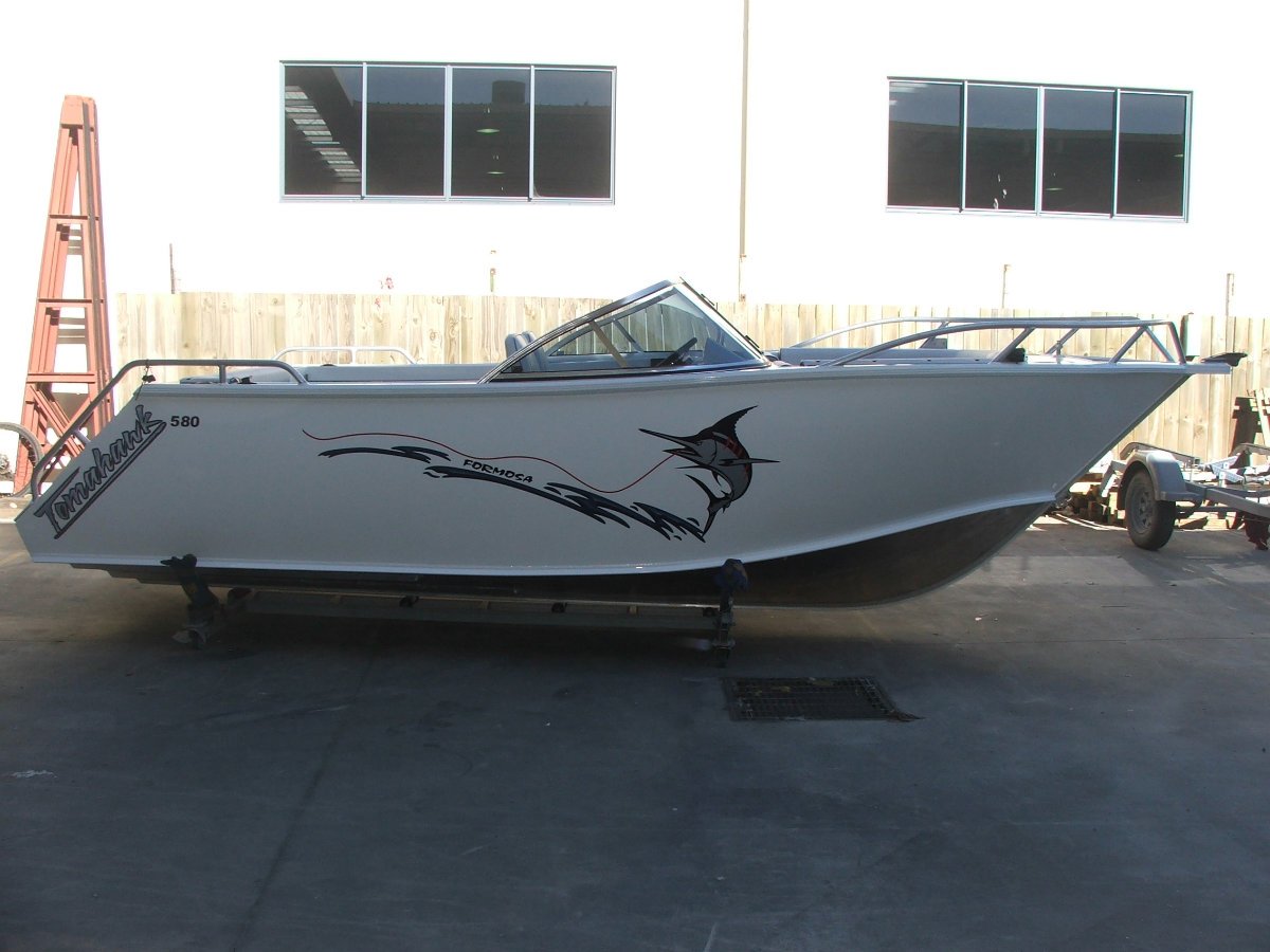 FORMOSA 580 TOMAHAWK BOWRIDER, 130HP EVINRUDE ETEC AND TRAILER. THESE ARE THE TOP OF THE LINE IN THE FORMOSA PLATE RANGE OF BOATS. IF YOU WANT THE BEST THEY MAKE THEN THESE ARE FOR YOU. 4MM PLATE BOTTOMS, 12 MONTHS QLD BOAT AND TRAILER REGO, INSHORE SAFETY GEAR AND FISHFINDER. BIG & BEAMY. ALUMINIUM SELF DRAINING DECK, REVERSE CHINE HULL, LARGE FUEL CAPACITY. MANY FACTORY FEATURES INCLUDING TRANSOM DOOR WITH LADDER, ENCLOSED BATTERY SHELF, HYDRAULIC STEERING. GREAT OFFSHORE BOAT MADE TO WITHSTAND THE ELEMENTS. FEATURES SUCH AS FULLY WELDED SIDE DECKS, REINFORCED FLOOR STRUCTURE & INTERNAL TRANSOM WELDS MAKE THE FORMOSA TOUGHER THAN YOUR TRADITIONAL TINNY. THE TOUGHEST PLATE BOATS IN THERE CLASS.
