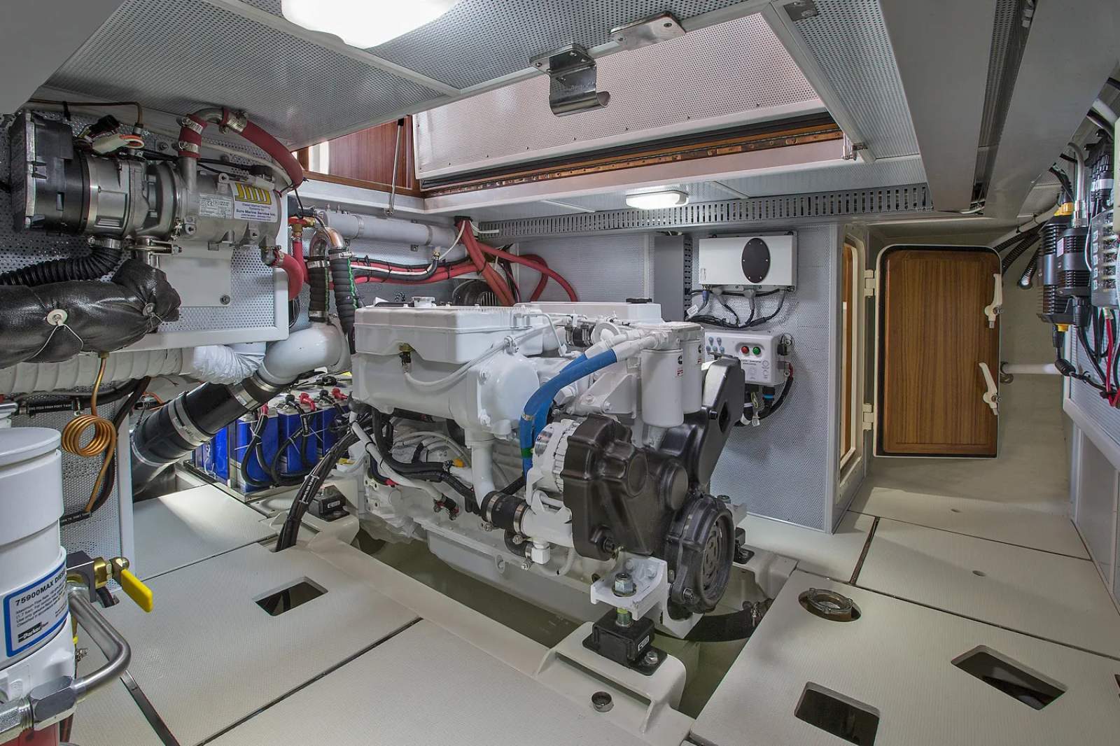 - Full-beam salon, open interior design, port and starboard pilothouse doors, secure steps and handrails to flybridge