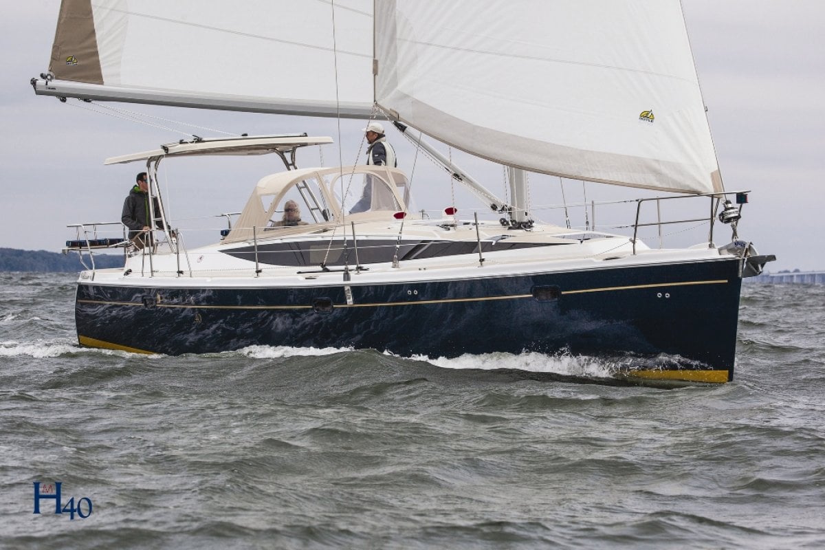 Forward of the cockpit the H40 is all business with organized deck and rigging layouts structured for single-hand sailing with the optional self-furling sail system. Alternatively, performance oriented sailors may choose a standard sail configuration. Both sail plans can be easily and safely handled with the canted handrails and lines and a non-skid surface for maximum safety and mobility. Aesthetics and functionality are also of note. Forward of the cockpit is a sleek low-profile cabin. The continuous windows running down both port and starboard sides allow abundant light to enter.