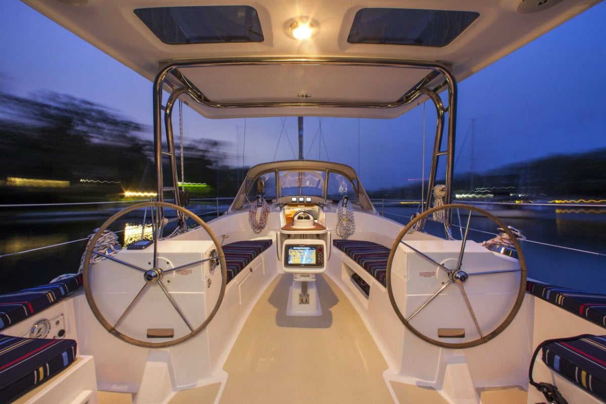 Topside, the Hunter 40 is poetry in motion. The generous cockpit is the social hub of the yacht with Marlow-Hunter’s TravelArch® rigging allowing freedom of movement and safety both underway and at anchorage. Large storage compartments for line and gear also serve – beautifully – as seating. The large pop-up table makes the cockpit a perfect entertaining and dining venue. The dual helm stations provide ease of handling, while stainless steel stern rail seating provides a relaxing seating area for company underway.