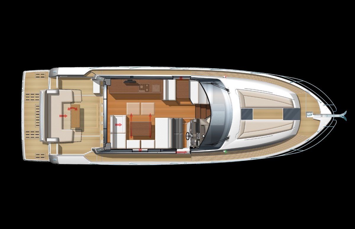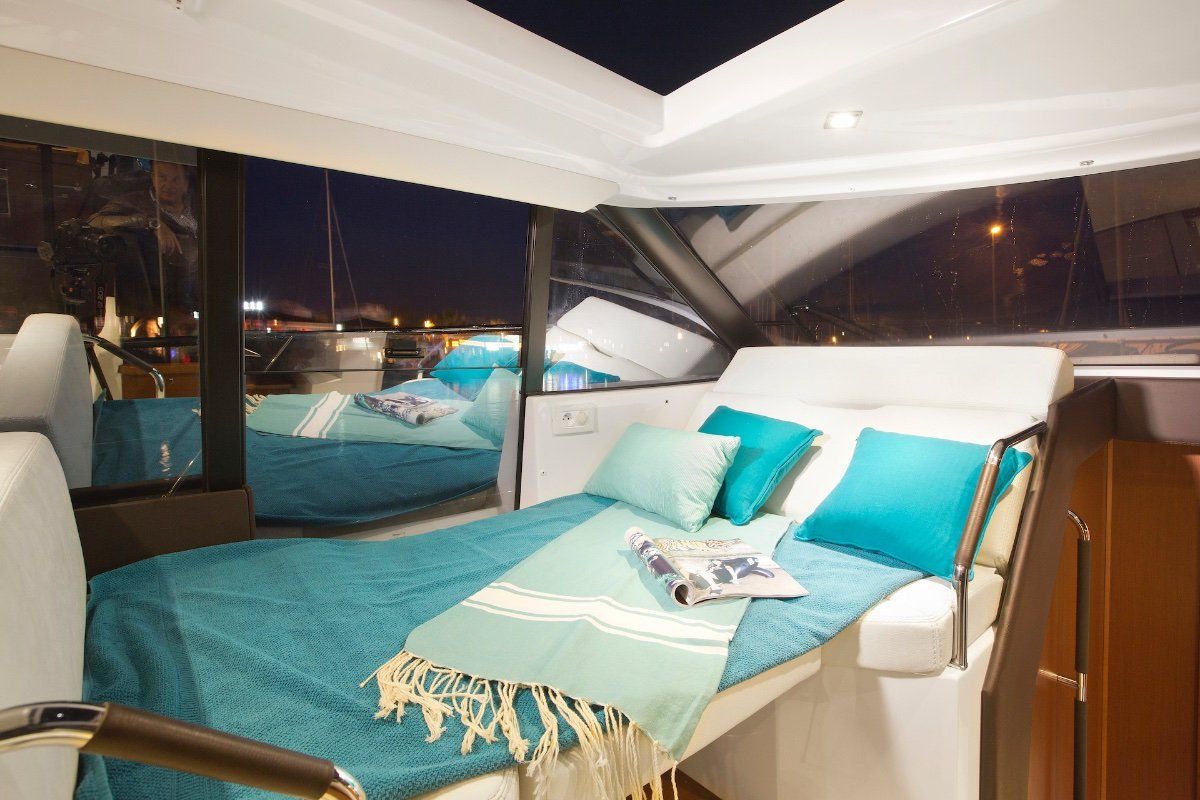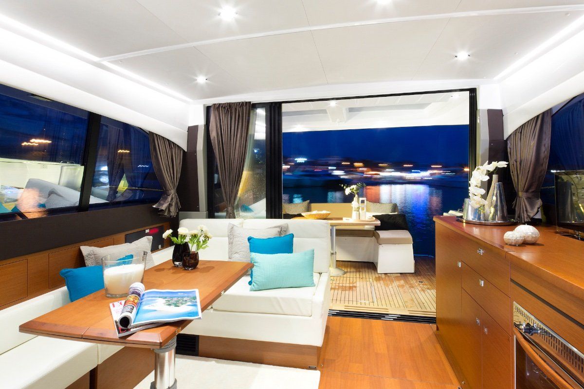 Powered by twin IPS Pod Drives the 2 cabin 1 (or 2) bathroom layout is unrivalled today. The sports yacht style layout with galley on the main deck and a seamless transformation from inside to out mean wherever you are on this boat, you won't be far from the action.