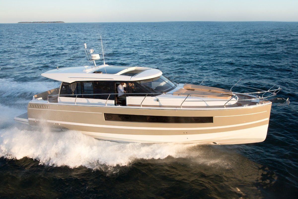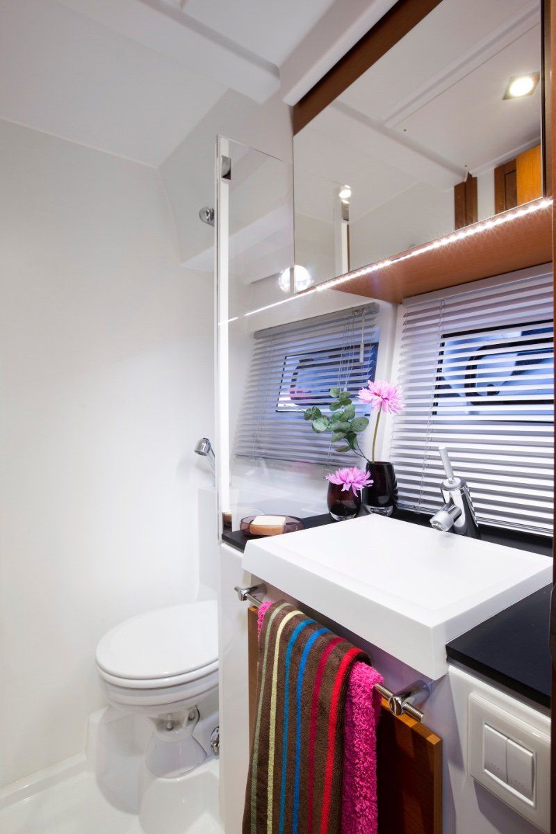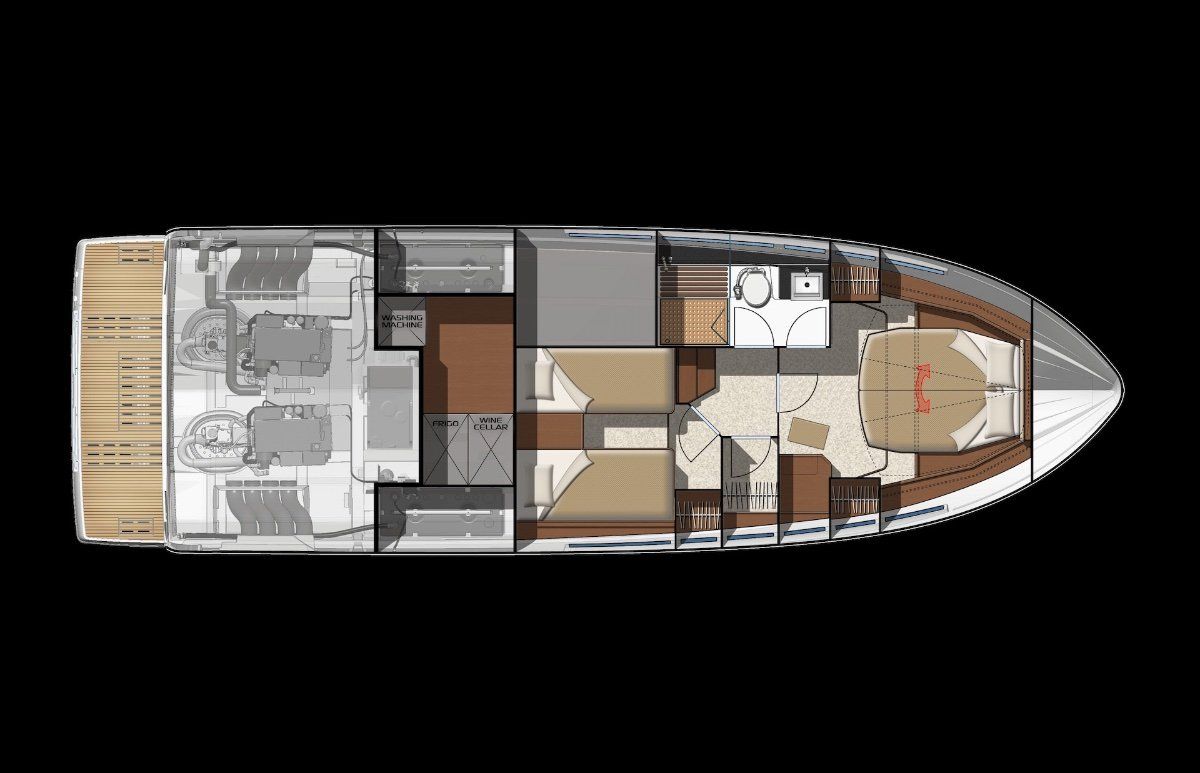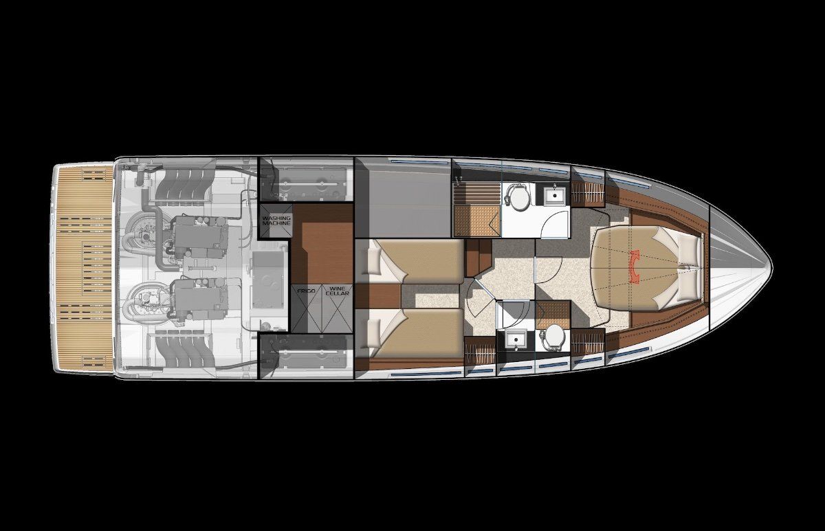 Powered by twin IPS Pod Drives the 2 cabin 1 (or 2) bathroom layout is unrivalled today. The sports yacht style layout with galley on the main deck and a seamless transformation from inside to out mean wherever you are on this boat, you won't be far from the action.
