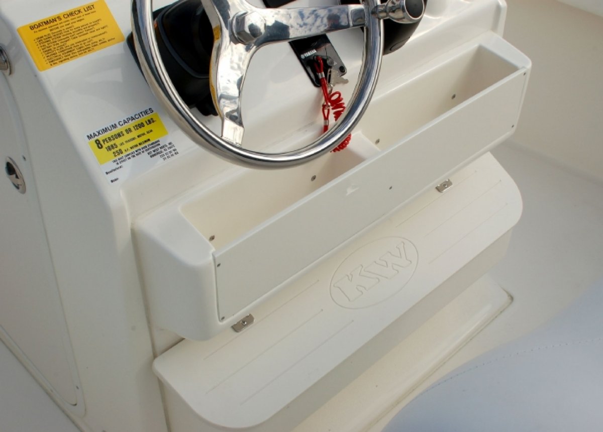 The 219CC expands the creature comforts of the rest of our line up into a boat that can take on some serious open water. The spacious front deck converts from comfortable forward faced seating with back rests to twin dry storage or fish boxes as you desire and need. The console houses the largest of the Key West changing rooms to date, and of course doubles as tremendous storage. The dash panel will flush mount up to 12" screens, and most radios, gauges, and controls. The rear bench seat has fully lined storage areas underneath the comfortable seating, and the swinging transom door offers easy entry for the swimmers.