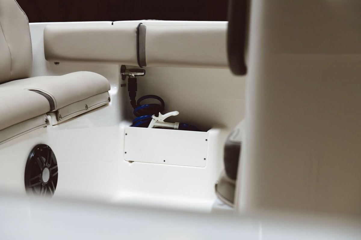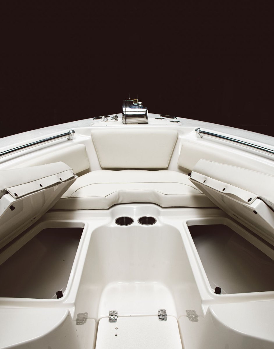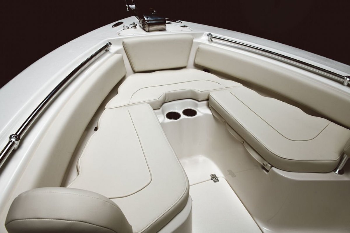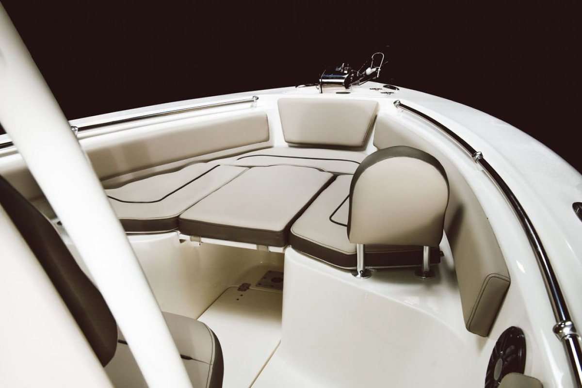 The 239FS offers the largest cockpit in its class, and loaded with features for both family comfort and serious fishing. Enjoy the comfort of the full width bench seat in the rear and the optional front facing seating in the bow for a relaxing day on the water with the family and friends, or hit the blue water safe and secure in a very capable long range offshore fishing platform. Fishing features include the ever present live well, rod storage racks, trolling rod holders, and even an insulated, macerated under floor fish box up front. The 239FS is ready for whatever water sports your family enjoys.
