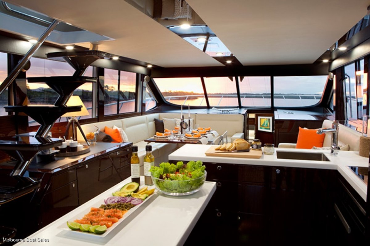 Step aboard the Maritimo M58 and marvel at its space, luxurious fit out and bright, breezy open plan layout. Wide opening bi-fold saloon doors, easy cockpit/saloon access and ample sea breezes to the saloon and cabins will ensure your family a relaxed lifestyle in their home on the water.