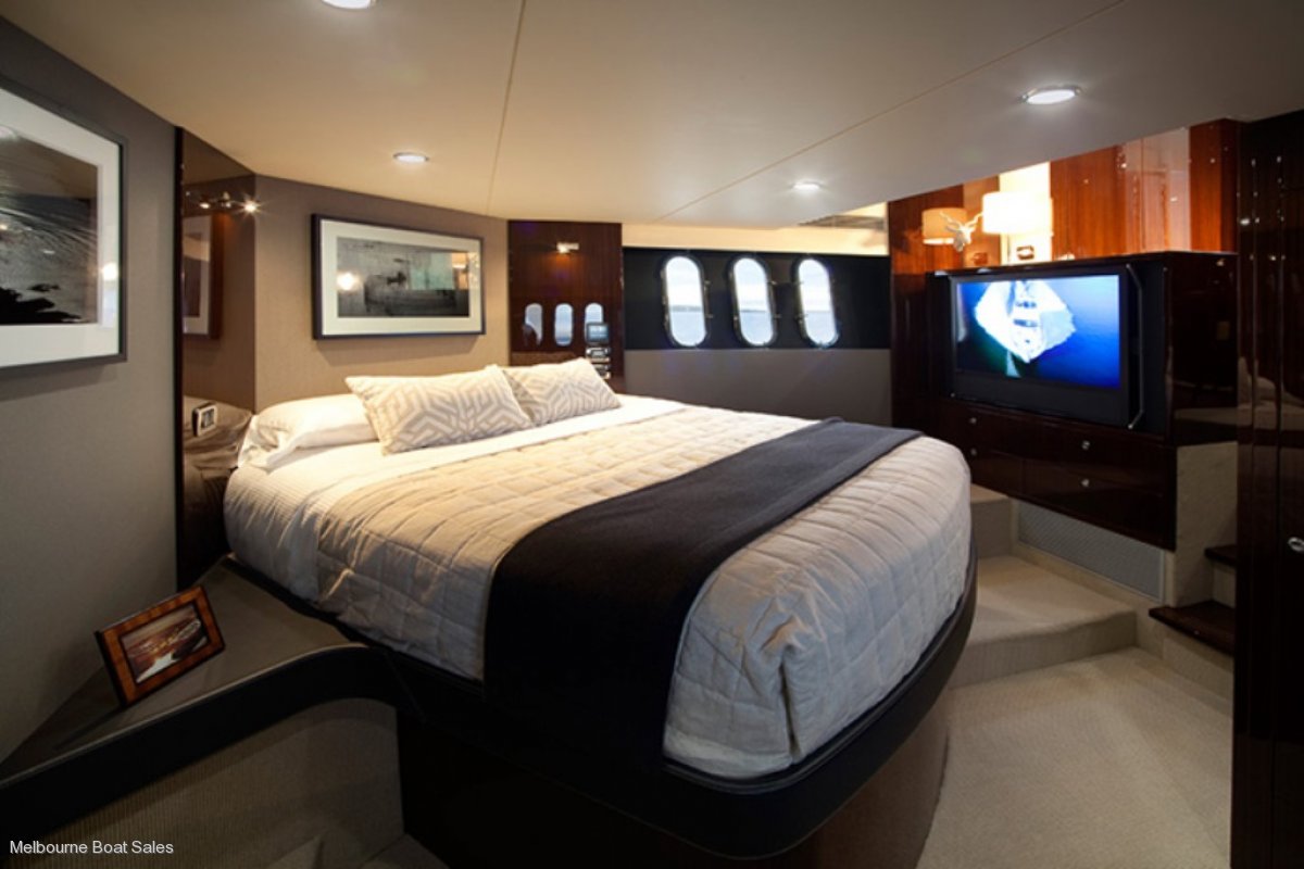 When it comes to creature comforts the M58 won't disappoint. The full beam master stateroom is complete with a luxurious king size bed, ensuite, chaise lounge and make up vanity or study.