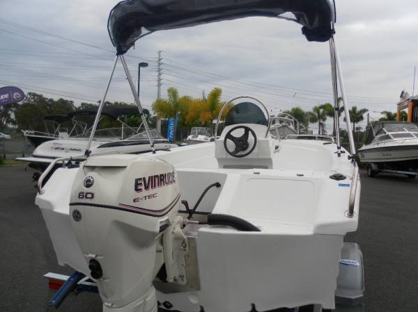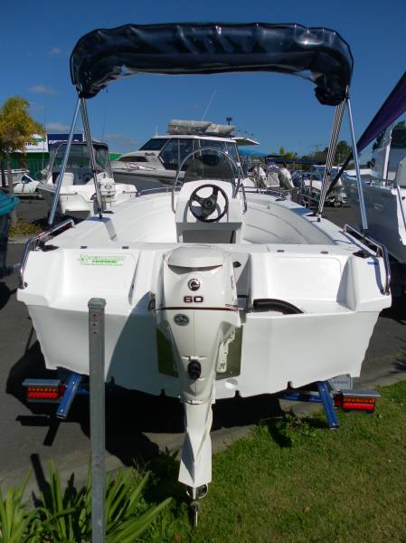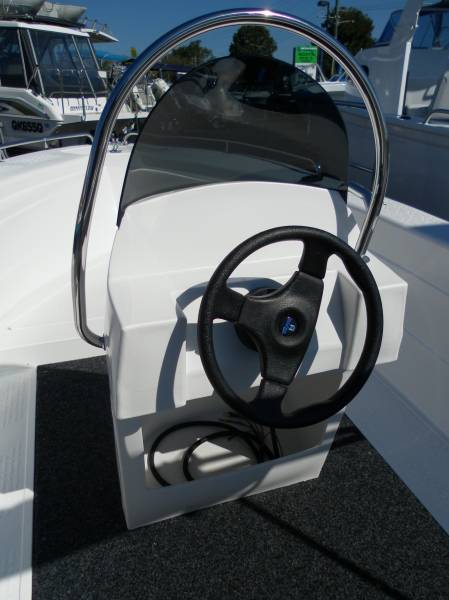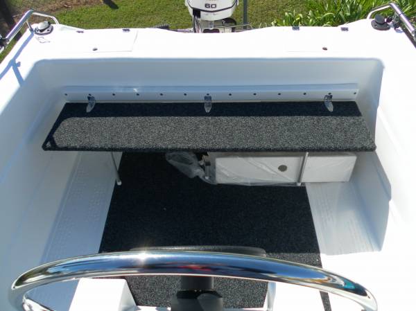 Featuring a large anchor well with bow roller, 2 x bait boxes, twin bilge pumps, bow & hand rails, mechanical steering, rear fold-down lounge, 4 x rod holders, transom plate with splash well, underfloor fuel tank, centre console with screen and more.