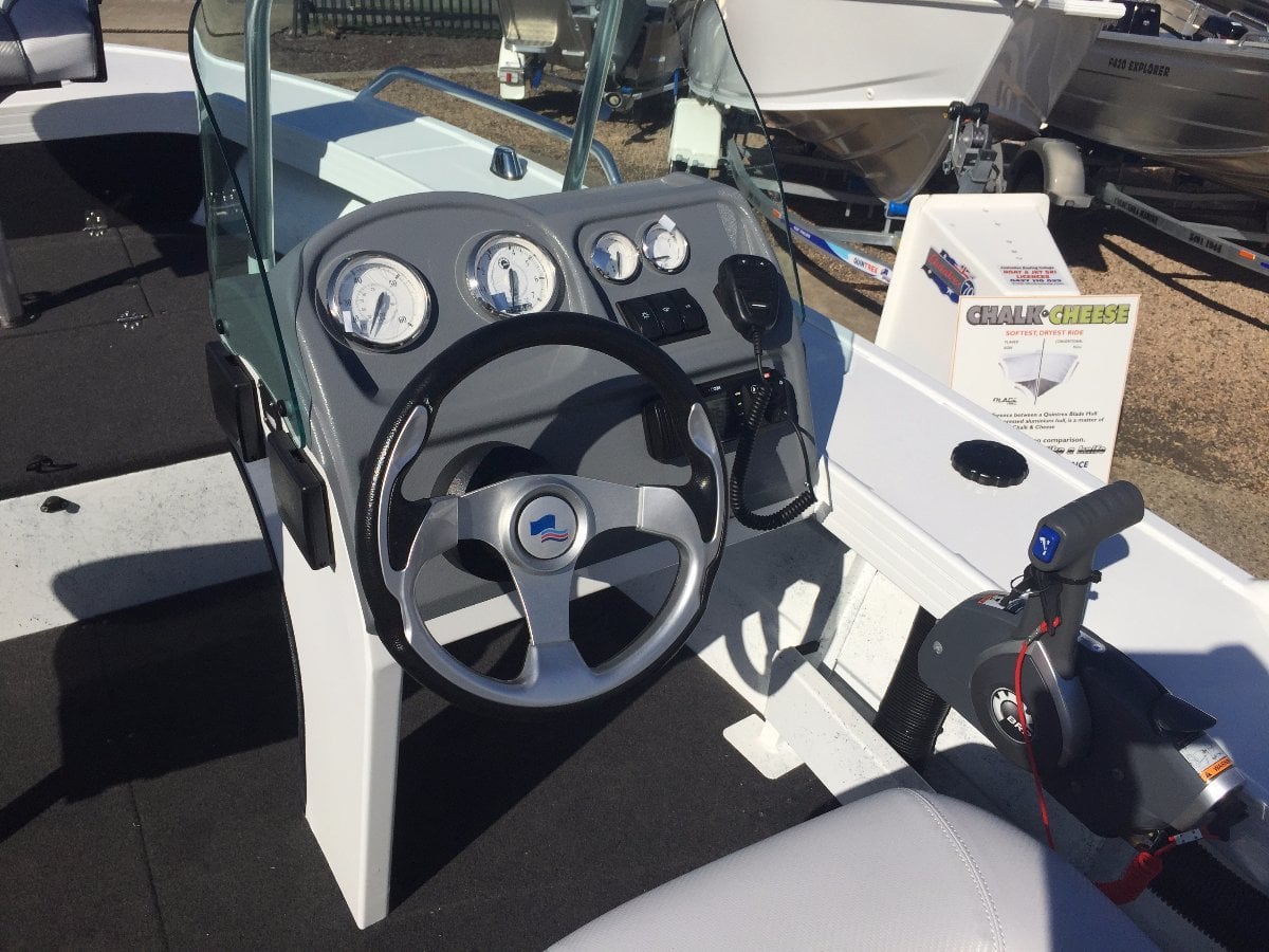 Quintrex 450 Top Ender Side Console, Blade hull / Flared bow / Flat sides