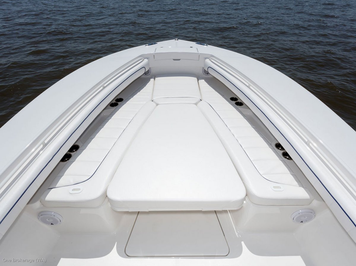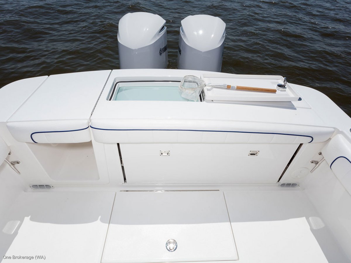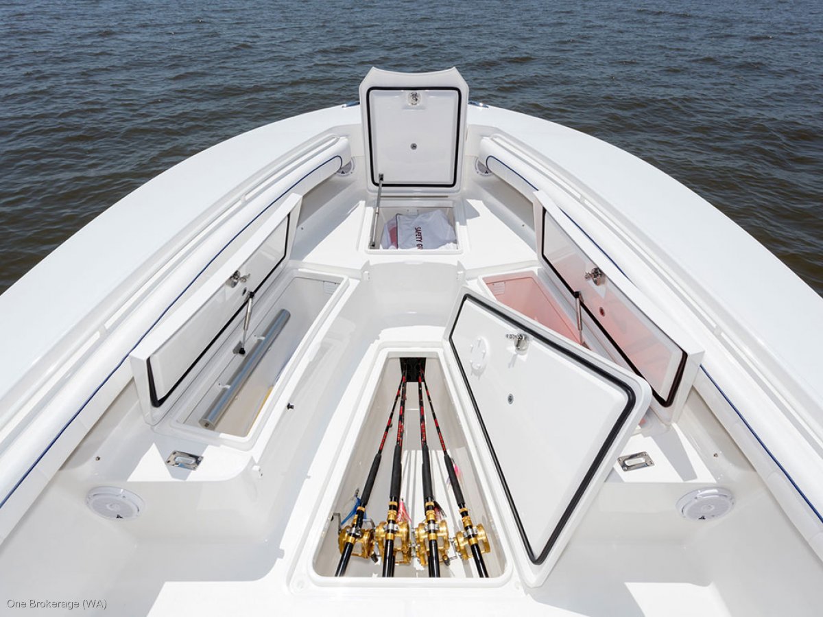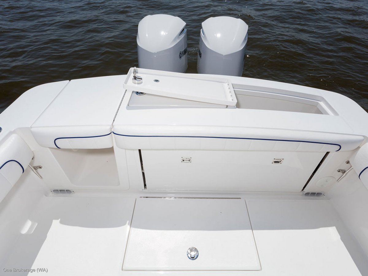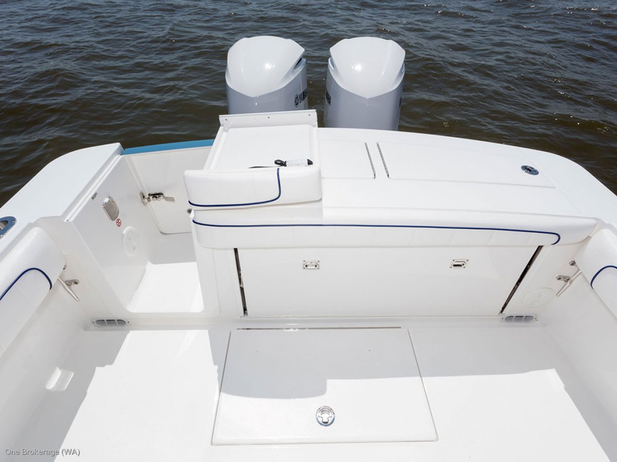 It's super fast, it fishes hard, and there is still plenty of room to entertain on the water. With its sharp bow entry and Lou Codega hull, Regulator's signature soft ride comes standard, and the new removable forward seat backrest option adds an extra degree of comfort. Seatback rod holders and optional t-top rocket launchers create an ideal rigging station for a group of anglers, putting all of your tackle within perfect reach. With the power of twin Yamaha F300s and optional Helm Master(TM), you won't believe where the 28 will take you.