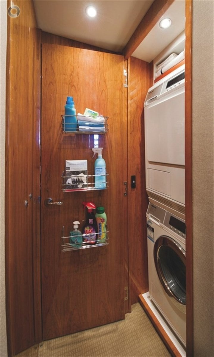 The 63 Flybridge boasts a number of ground breaking design enhancements and offers an immensely capable vessel, offshore and at anchor. The 63 Flybridge is a luxurious and highly capable long range offshore vessel, with many popular design cues taken from the fleet's prestigious flagship, the Riviera 75. This model also incorporates a multitude of additional cruising amenities driven by direct feedback from Riviera owners all over the globe. Boasting a galley positioned central to the party, a cockpit that is an extension of the saloon deck space inside, a master stateroom that is bathed in light and fresh air, an enclosed flybridge that serves as a sky lounge. Refinements to the hull further enhance her performance and sea keeping ability. Engineered excellenceIn engineering terms the 63 Flybridge is a shaft drive configuration, and base power is twin 1150hp Caterpillar diesel engines with a fuel capacity of 5,700 litres (1,731 US gallons). The 63 Flybridge incorporates the latest technology including state-of-the-art digital switching for all DC electrical components, using the proven C-Zone CAN bus system to create fingertip control of electronic functions. At the touch of a 10 inch LCD screen - positioned in a cabinet at the base of the flybridge staircase - a multitude of pre-set functions can be activated. Whether you are at sea or in party mode at the marina, the C-Zone digital switching system will present a specific menu offering control of all necessary functions. Of course, C-Zone allows for manual override so owners can customise the system to suit their personal requirements. The 63 Flybridge is a seaworthy, highly capable long-range offshore vessel. Riviera's in-house designers have created a superbly running boat. The hand-laminated fibreglass hull offers a very solid feel offshore, thanks to Riviera's legendary construction method and a deadrise of 12.5 degrees. The saloon in the skyOverlooking the cockpit is the spacious enclosed flybridge, featuring forward helm and aft docking station. The open flybridge option features an aft helm with a U-shaped lounge forward of the helm and around a convertible table with a settee opposite. The enclosed flybridge features a hinged awning window and glass door that both open to bring outdoors in creating a large unified space. Wrap around seating to port features folding arm rests with functional storage underneath and a drop down dinette table. This is a truly luxurious sky lounge. The upholstered wrap around forward helm can accommodate up to three 12 inch displays. Air-conditioning ducts can be vented against the windscreen to demist the glass in humid conditions. Opening side windows feature positive seals and deep drainage slots. Night-time privacy can be assured with retractable venetian blinds. And throughout the 63 energy saving LED lighting illuminates this social space with a warm ambiance. The aft docking station is located to the starboard side of the external flybridge door with excellent visibility of the cockpit and aft quarters of the boat. To port an aft-facing lounge accommodates two people who wish to escape attention indoors, or talk privately while the party continues below in the cockpit. Relaxing made easyThe very large main saloon is bright and airy, with 360 degree tinted windows and offering views from every seating angle and position. This is the social hub of the vessel. However, the party is not constrained to stay just indoors. The 63 Flybridge has taken many design cues from the much larger Riviera 75 and has incorporated social seating into the cockpit, which is no longer the sole domain of the sports fisherman. The cockpit now doubles as an alfresco dining experience, with optional opposing fore and aft facing mezzanine seating either side of a solid teak table. The mezzanine also contains a fridge and storage space. A full barbecue centre with sink, rubbish bin and storage is located centrally within the transom, sealed from the weather when underway but creating an entirely different focus for the party at day's end. The practicalities of a sport fisher with fully optioned fighting cockpit are enhanced with features like below deck self-draining fish bins, game chair mounting plate solidly glassed into the cockpit floor, and recessed toe kicks. An extensive options list covering rod holders, live bait tank wells, outriggers, single side mount Palm Beach engine control levers, which are a favourite with sport fishermen, ensures the full versatility of the 63. The galley is positioned aft, adjacent to the saloon bulkhead, and separated from the large sociable cockpit space by a hinged awning window and full glass door. The result is an extension of light and space from outside in, with guests easily able to converse with whoever is in the galley. Galley appliances comprise high quality s/steel combination microwave and oven, efficient induction cooktop and slimline dishwasher are installed within the U-shape galley, set to port and out of the way of the main fore and aft traffic corridor. A huge working area set atop a solid surface benchtop features an underslung stainless steel sink, an enclosed waste bin, dedicated cup, plate, pot and cutlery drawers and ample storage. Forward of the galley, also to port, and an L-shape lounge with dinette table with seating capacity for four plus two. Opposite the galley to starboard there is a bar area with ice maker and fridge set under ergonomically raked flybridge stairs, with solid teak treads nested on flawless tig-welded stainless steel supports. A special feature of the saloon bar is an electric lift glassware cabinet which retracts into the varnished cabinetry while under way, yet rises to the occasion at the touch of a button. Powered by whisper quiet drive technology, the cabinet features LED backlit shelving. Forward of the bar there is a spacious U-shape lounge and dinette, with seating for up to 12, well positioned to take advantage of the large TV 