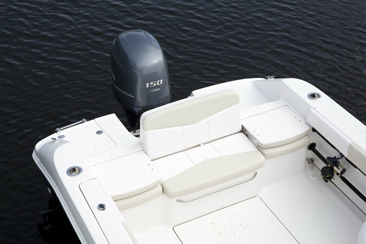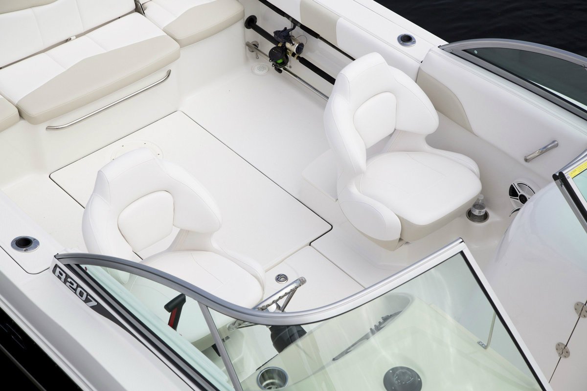 Robalo 207 Bowrider, the ultimate crossover, this do everything boat has the family covered; with a superb fishing boat layout including all of the Robalo features you would expect: self draining decks, live bait tank, rod storage huge fish boxes, casting platforms for & aft and toerails. But you can add a factroy ski tow frame or even a wake tower and suddenly the R207 becomes a family fun boat perfect for tubing, waterskiing and wakeboarding. The deep v hull and wide reverse chines offer a soft, dry ride with excellent stability at rest and to top it all off their is an enclosed toilet to gaurantee that you will be out on the water all day enjoying your day and your new boat uninterupted.