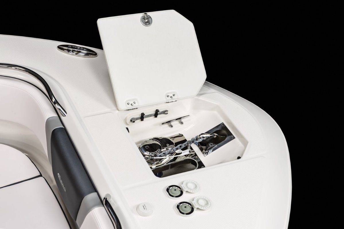 Optional anchor winch available with chain and st steel anchor.