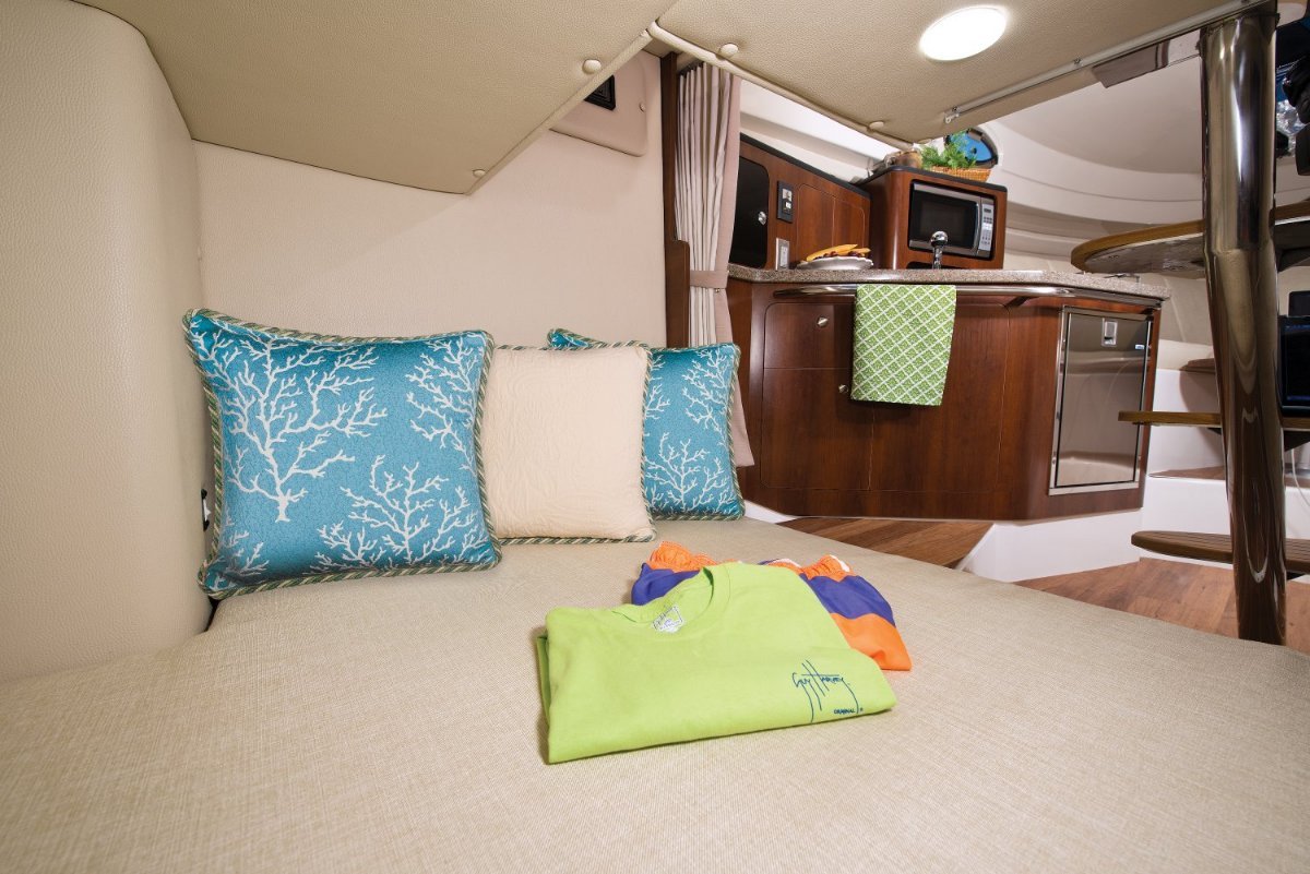 Robalo R305, choose your own outboards from twin 250's to twin 350's, The R305 is an incredible fishing cruiser full of standard features including, hardtop, walk through transom, 25 gallon live well, electric anchor winch with foot switches and helm switch, stainless bow rail, twin 100 gallon insulated fish boxes, convertible passenger seat, cockpit freshwater sink, extensive rod storage, cockpit side combing, convertible passenger seat, ice chests everywhere and heaps more, too much to list and we havn't even started in the cabin yet! Accommodation for 6 with V berth, aft cabin and pullman berths above V berth, galley with stainless steel refrigerator, microwave, single burner stove, maple cabinetry, solid countertops and heavy duty grab rail, Vacuflush head with holding tank, freshwater sink, solid countertop and pull out shower. Customising your boat is simple with a list of options including bow thruster, generator, underwater lights and an array of navigation equipment. The flagship of the walkarounds, the R305 is the perfect mix of innovative cockpit design and premium workmanship. Engineered to do everything in a big way, it simply does not get better than this.