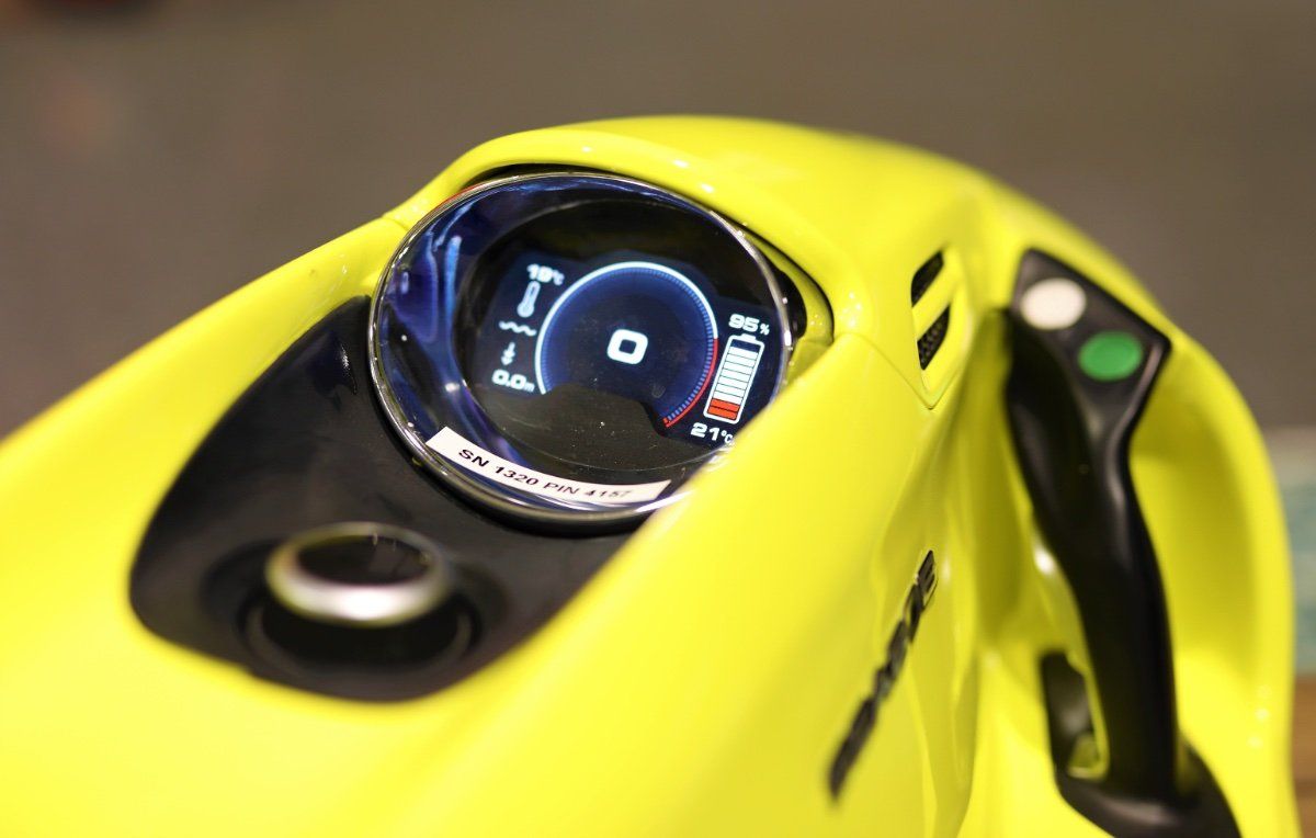 The SEABOB F5 S is an ultimate high-performance watercraft. Weighing just 34 kg, the vehicle possesses extremely good handling properties out of the water. The SEABOB F5 S boasts a strong propulsive force of 680 newtons in the water. The E-Jet Power System is controlled in 6 power levels. These gears of the SEABOB F5 S allow you to glide along at a relaxed pace in a low gear or, for more ambitious high-speed driving, switch up to 6th gear.