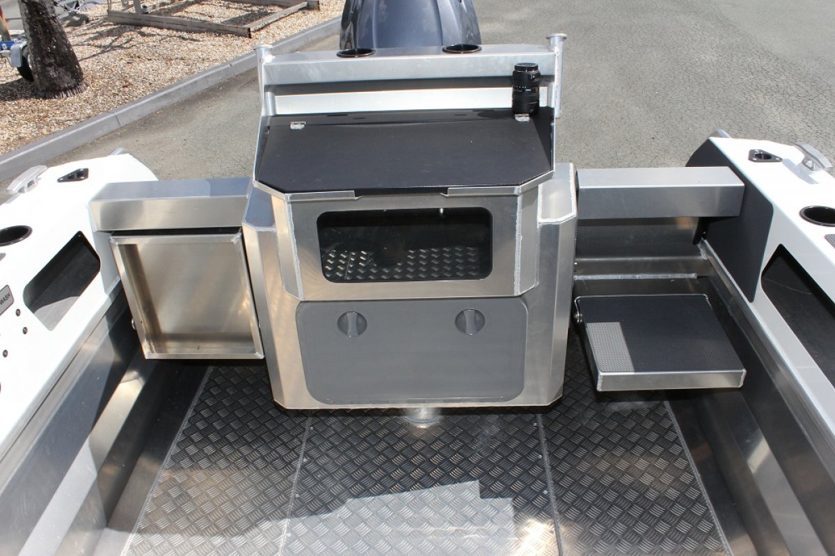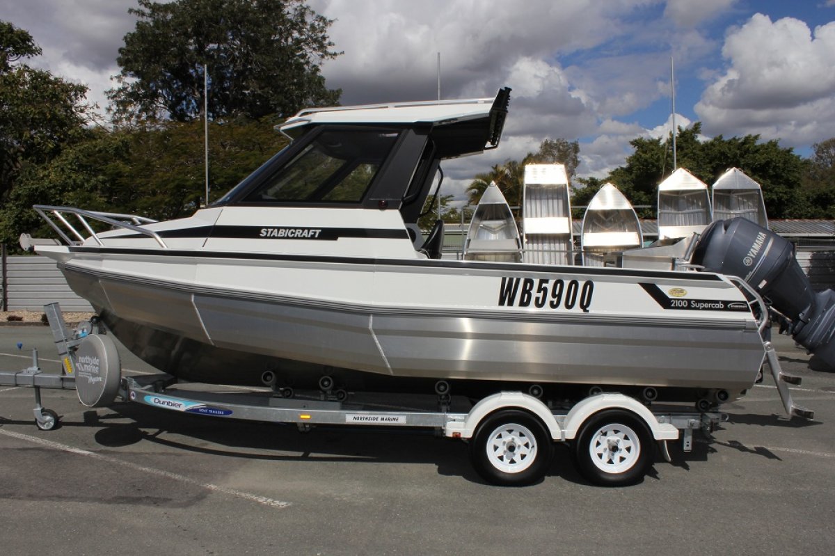 Designed with the serious fisherman and explorer in mind, the Stabicraft 2100 Supercab comes with class leading fuel capacity, extra large live bait tank, full toughened glass, capstan winch and comfortable, full size vee berth and helm seating. Light weight and clever hull design help the hull plane easier leading to better fuel efficiency; coupled with the standard 200 litre fuel tank, the 2100 has true blue water capability. The Game Chaser Transom and Arrow Pontoons improve handling and sea keeping characteristics while maintaining the safety in positive buoyancy Stabicraft is renowned for.