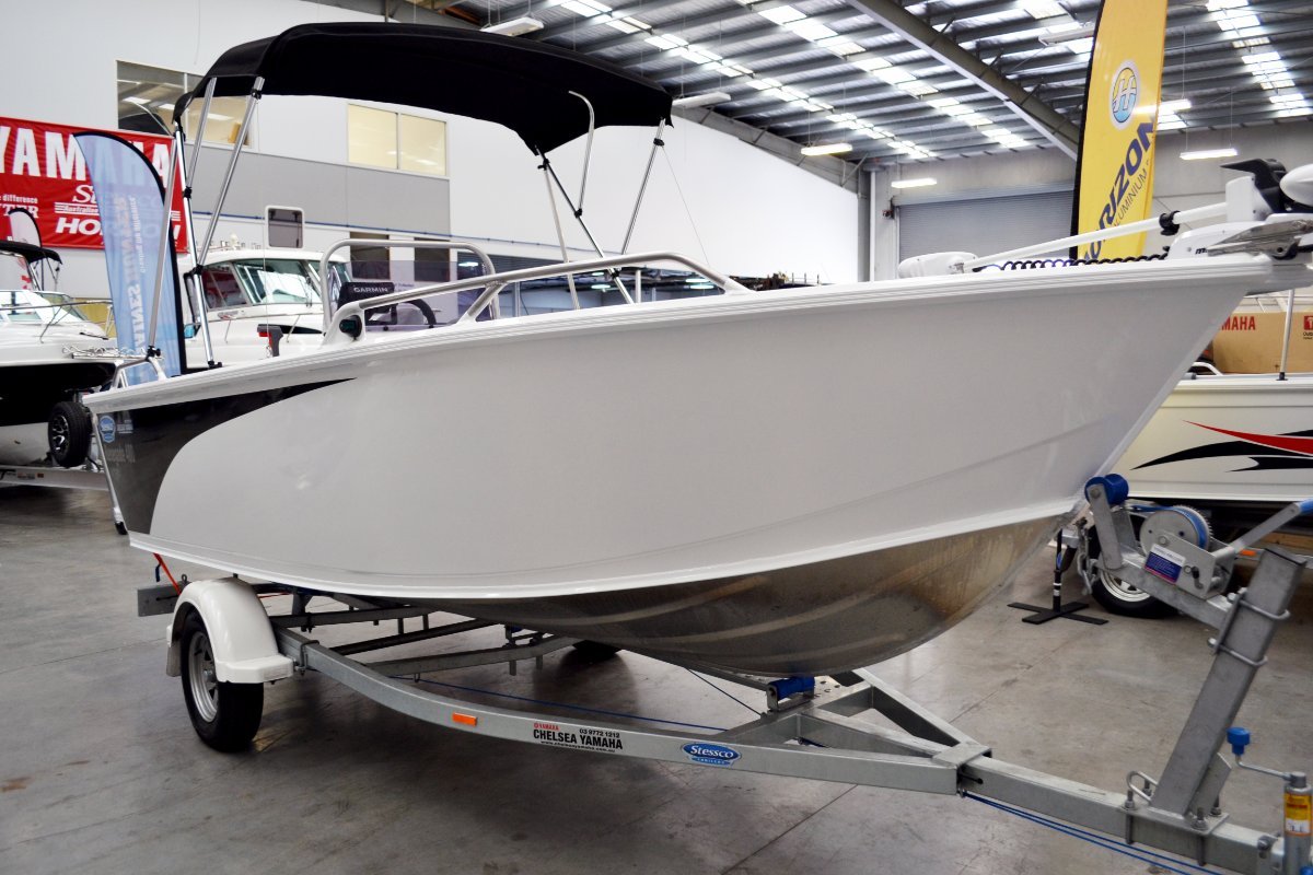 The Stessco Renegade is one of the softest riding side console built in Australia. This model offers loads of fishing space it is big and beamy and has loads of features ----3mm bottom and sides. Fully welded top decks. Plumbed live wells Front and rear casting decks. 80 LTR underfloor fuel tank. Plumbed live bait tank