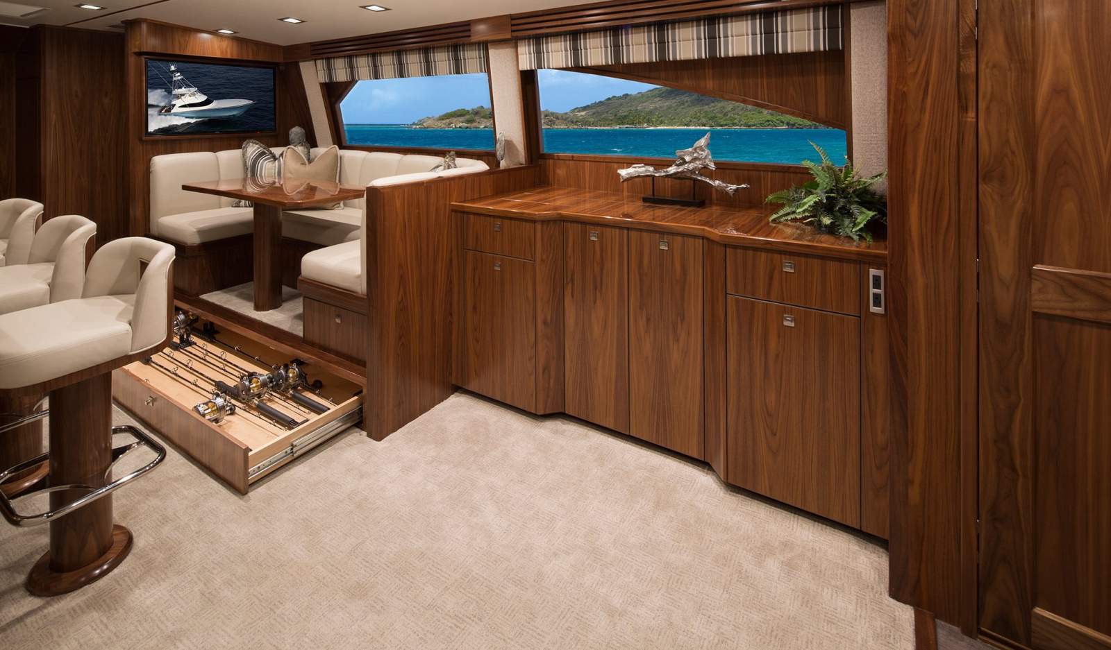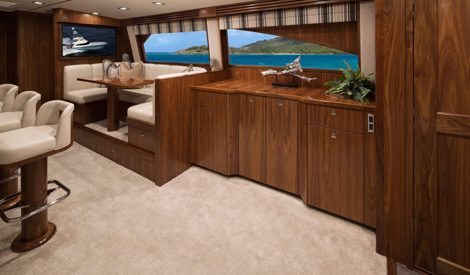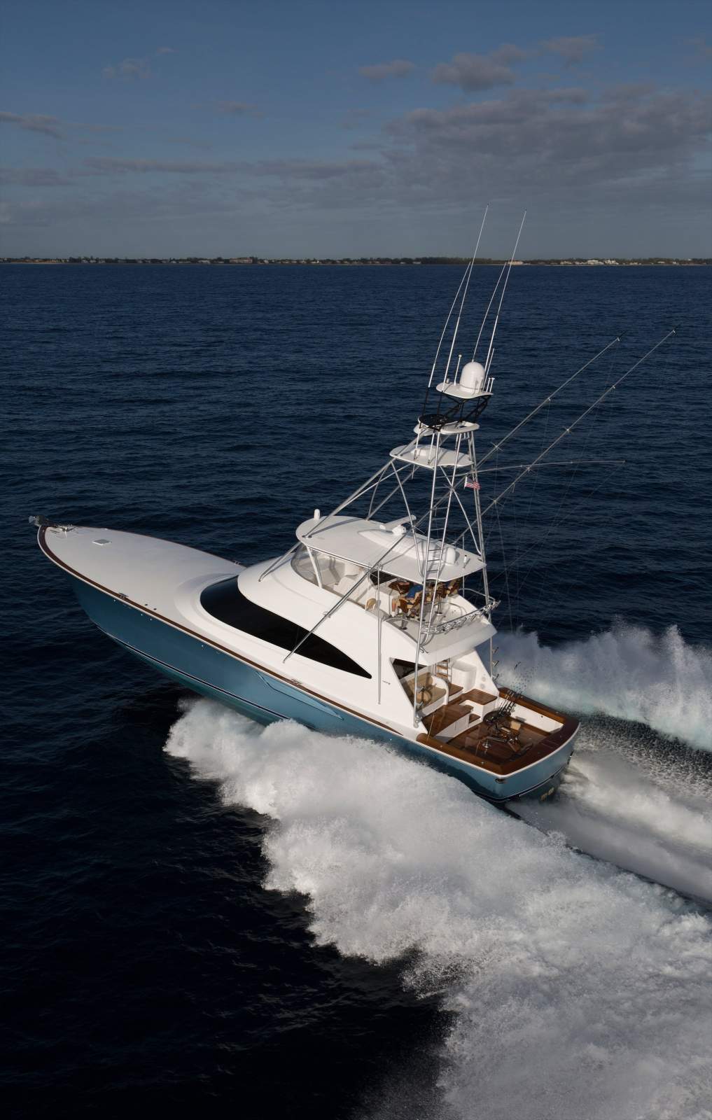 Viking's legendary reputation for building peerless sportfishing yachts continues to wave its reign as we introduce the impeccable 72 Convertible. This model is another edition of this fabulous story offering groundbreaking blue-water performance, style and engineering. The standard Open Bridge accommodations layout includes four staterooms each with a private head, a J-shape sofa in the salon, a U-shape galley with custom granite countertops, crown moulding on upper cabinetry, a large walk-in pantry forward, and a queen berth in the forward stateroom. An optional layout also offers crossover berths in the forward stateroom. The standard Enclosed Bridge (EB) salon mirrors the Open Bridge plan with the addition of a circular staircase to the enclosed bridge helm, which serves as a second salon with an L-shape sofa, a cocktail table, refrigeration, and an entertainment centre.