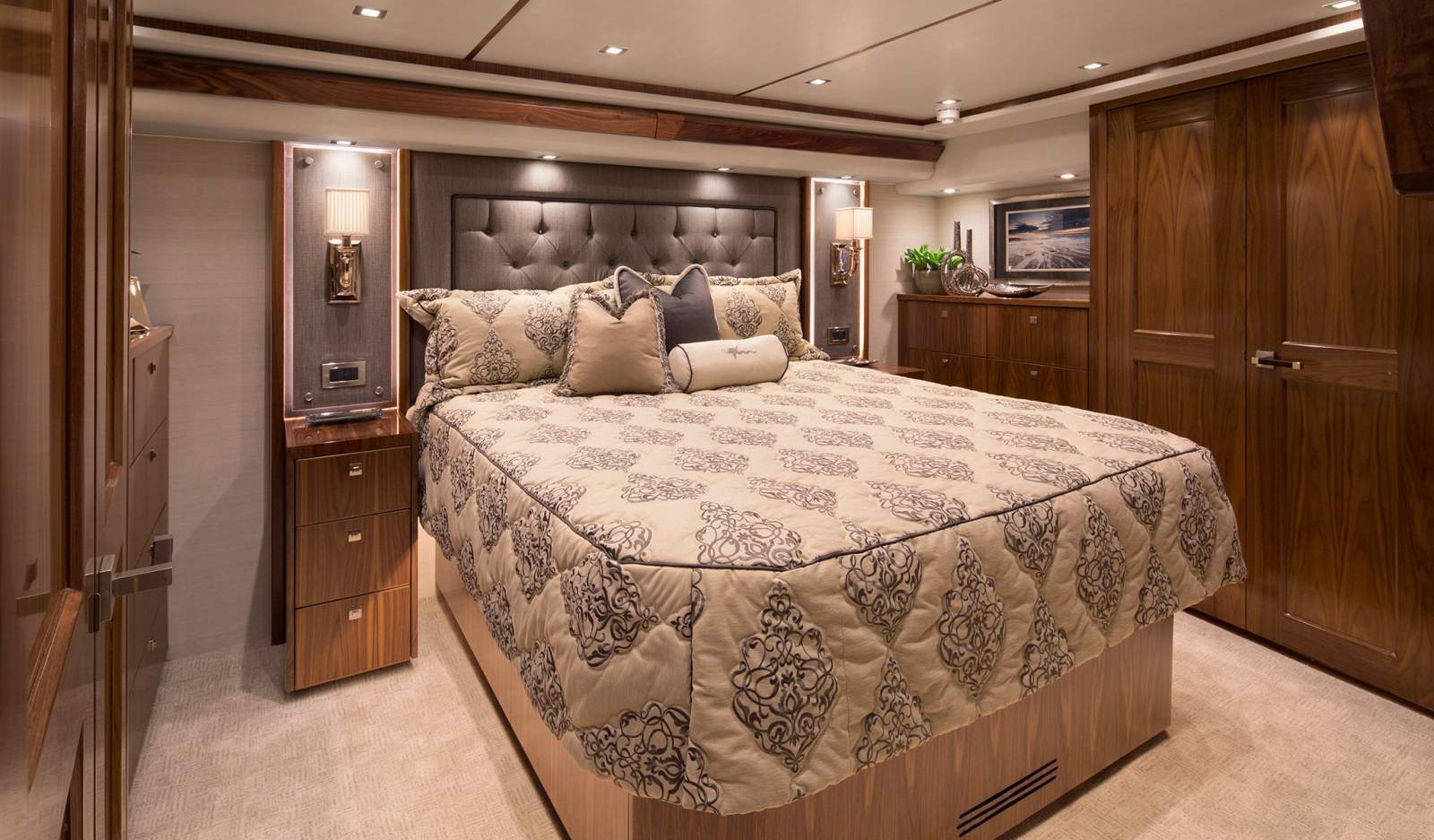 - Bed, king-size, walk-around fore and aft bed with mattress