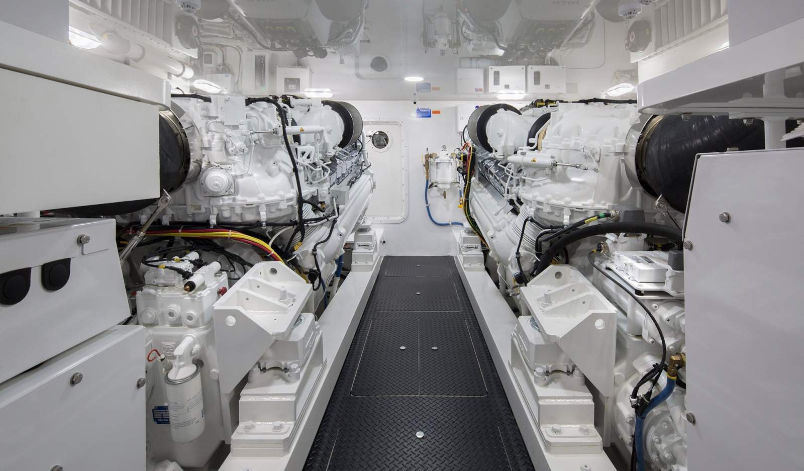 - Master electrical control provided via power distribution system utilizing a redundant Can Bus control for AC/ DC remote breaker electrical systems. Complete system control and monitoring provided by 2 integrated touch screen controls-(1) located at salon main panel and (1) at the flybridge helm