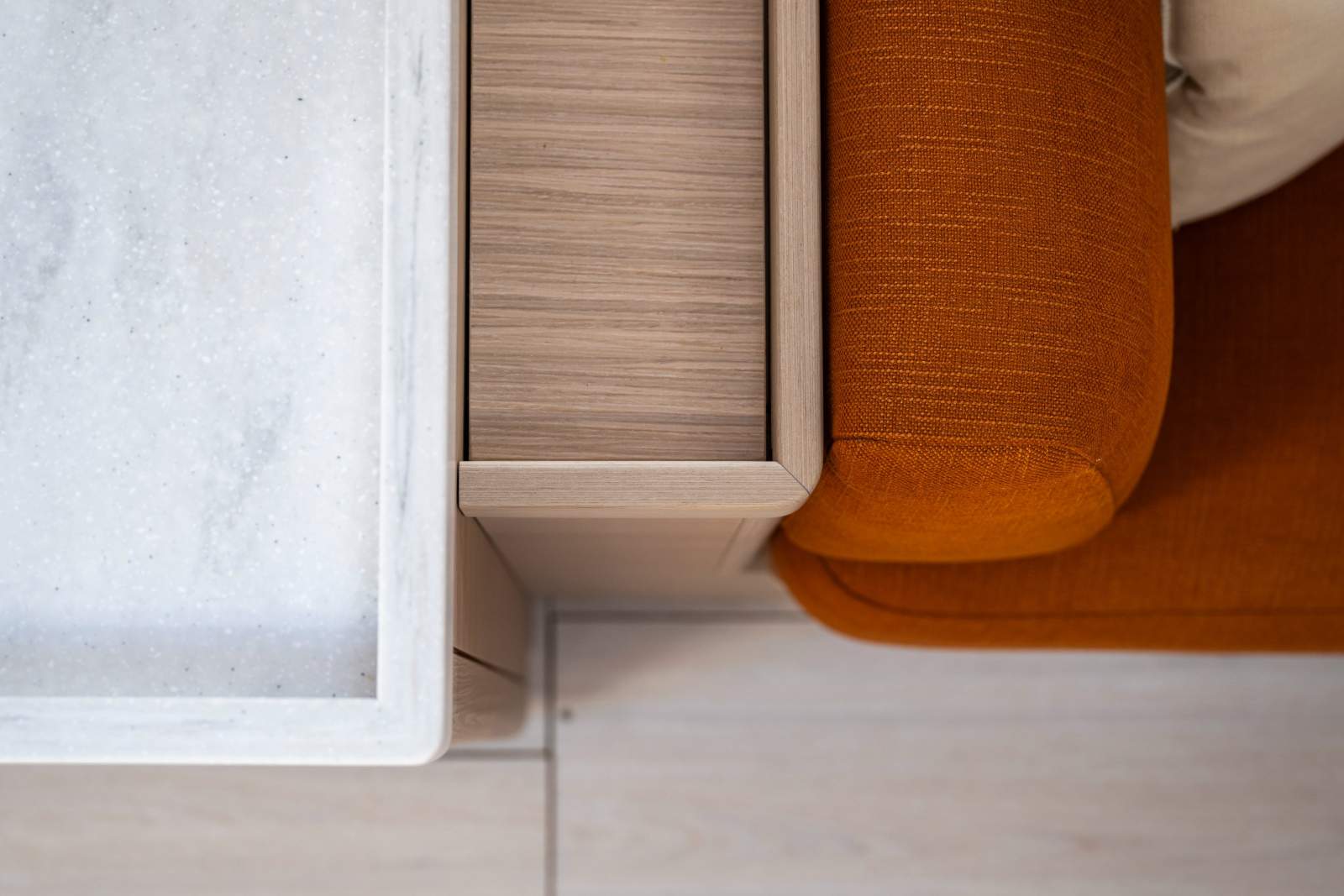 Designed to make people want to stay and enjoy the company of their friends and family. The luxurious upholstery, boasting thick foam pads and high-end fabrics, provides excellent seating comfort, while the beautifully finished sanded oak woodwork gives the space a warm, sophisticated feel. To customise your interior, you can choose between three exclusive mood options: Sunset, with warm Mediterranean tones that create a cosy, welcoming interior; Pacific, inspired by the purity and sparkling freshness of tropical lagoons; or Ivory, for a timeless, peaceful elegance.