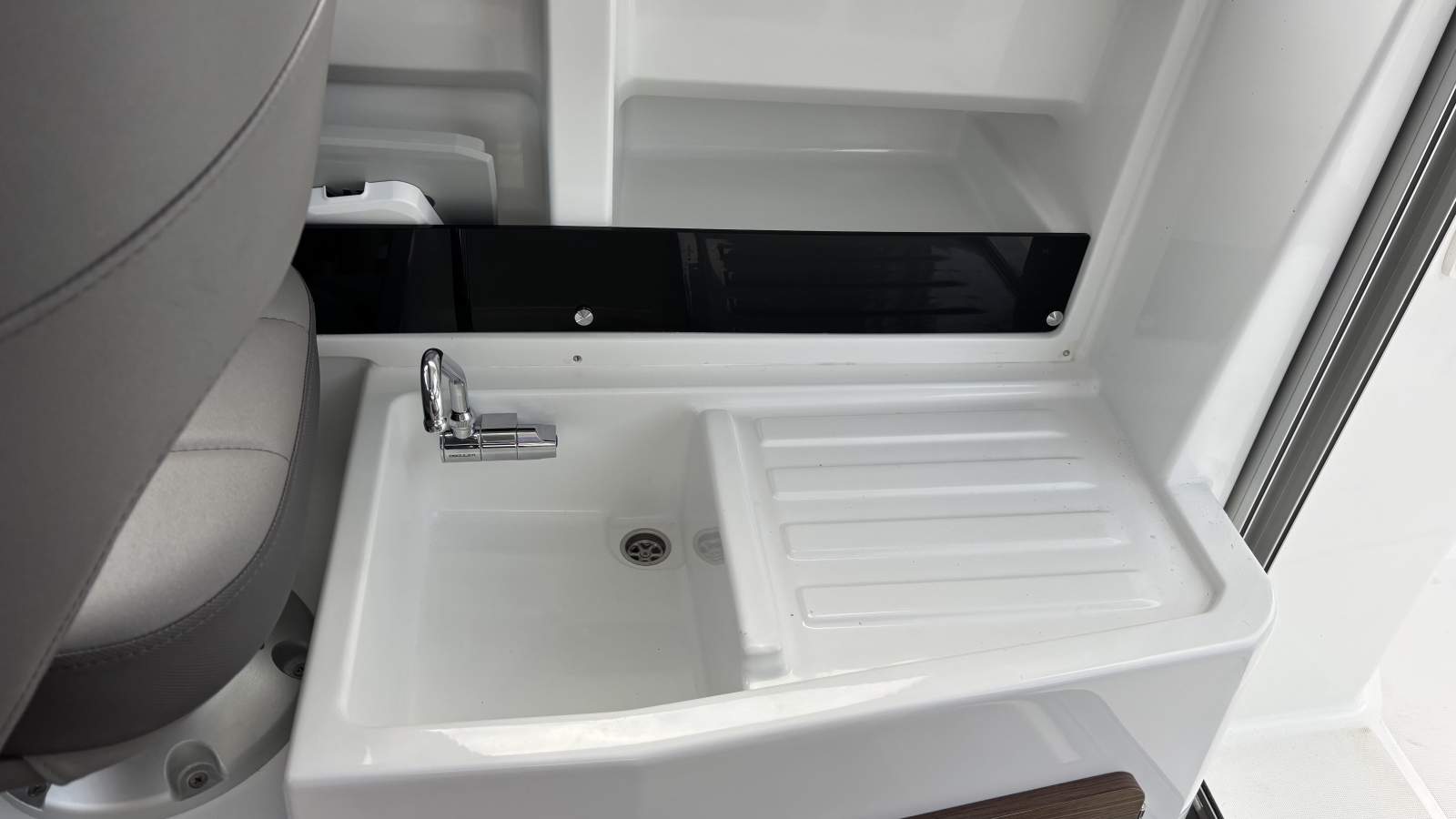 With trailerable dimensions, the Antares 7 offers easy transport and entry into the renowned Antares range. Its bright, open interior is enhanced by large windows and a sliding sunroof, creating a light-filled, comfortable space for overnight trips with up to four guests. The versatile cockpit transforms into a generous sun lounge, while the extended swim platform provides easy water access.