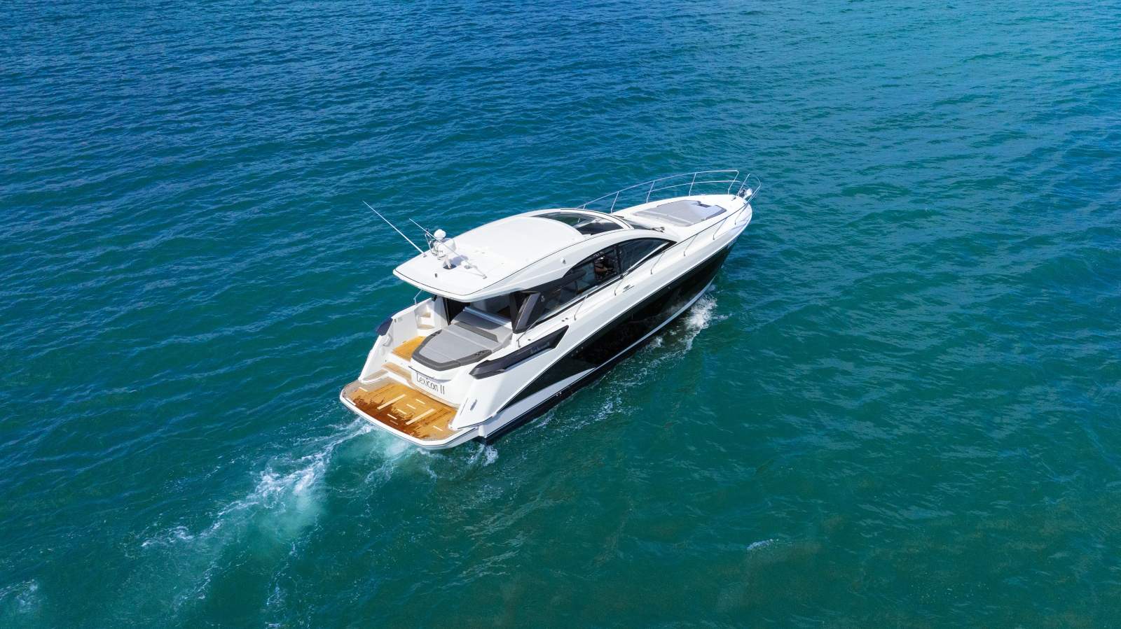 The Gran Turismo 45 hard-top has been completely redesigned to include much larger side windows that provide fabulous views of the open sea. Another option is the patio door that protects the boat's occupants from bad weather. The large starboard side electric window hinges up into the hard-top roof.