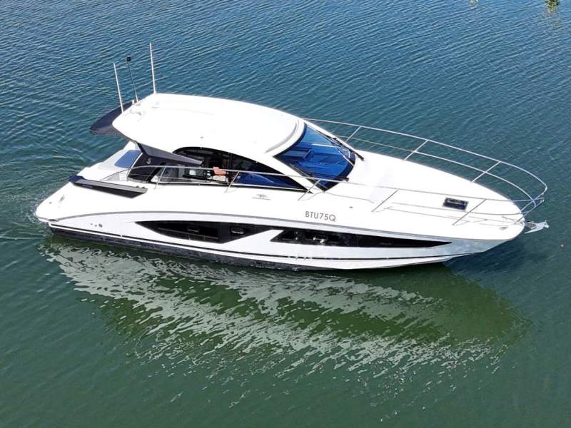 The central driving station is covered by a rigid T-top painted in metallic paint and protected with a large windscreen giving the driver and co- pilot perfect comfort, for long distance cruising, inshore or offshore. The boat is powered by twin NEW YAMAHA 450hp outboard with Joystick which provide great performance and fuel economy.