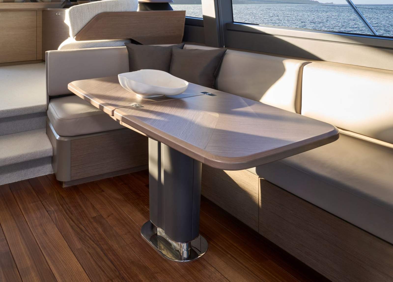 Twin MAN engines (up to 1000hp each) deliver exhilarating performance with efficient cruising capabilities, while advanced navigation systems, joystick controls, and optional Seakeeper stabilization ensure an intuitive, smooth, and enjoyable ride in all conditions.