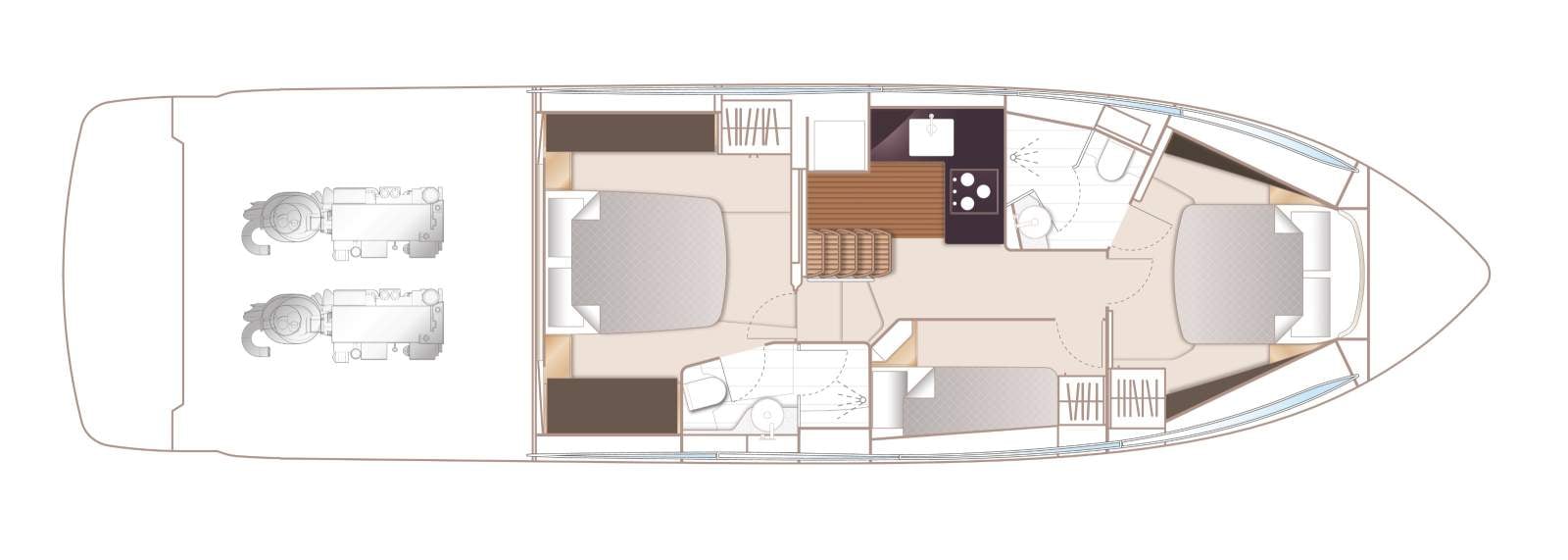 2 Cabin, Master large double with ensuite, VIP Double forward that scissors into 2 singles. VIP ensuite.