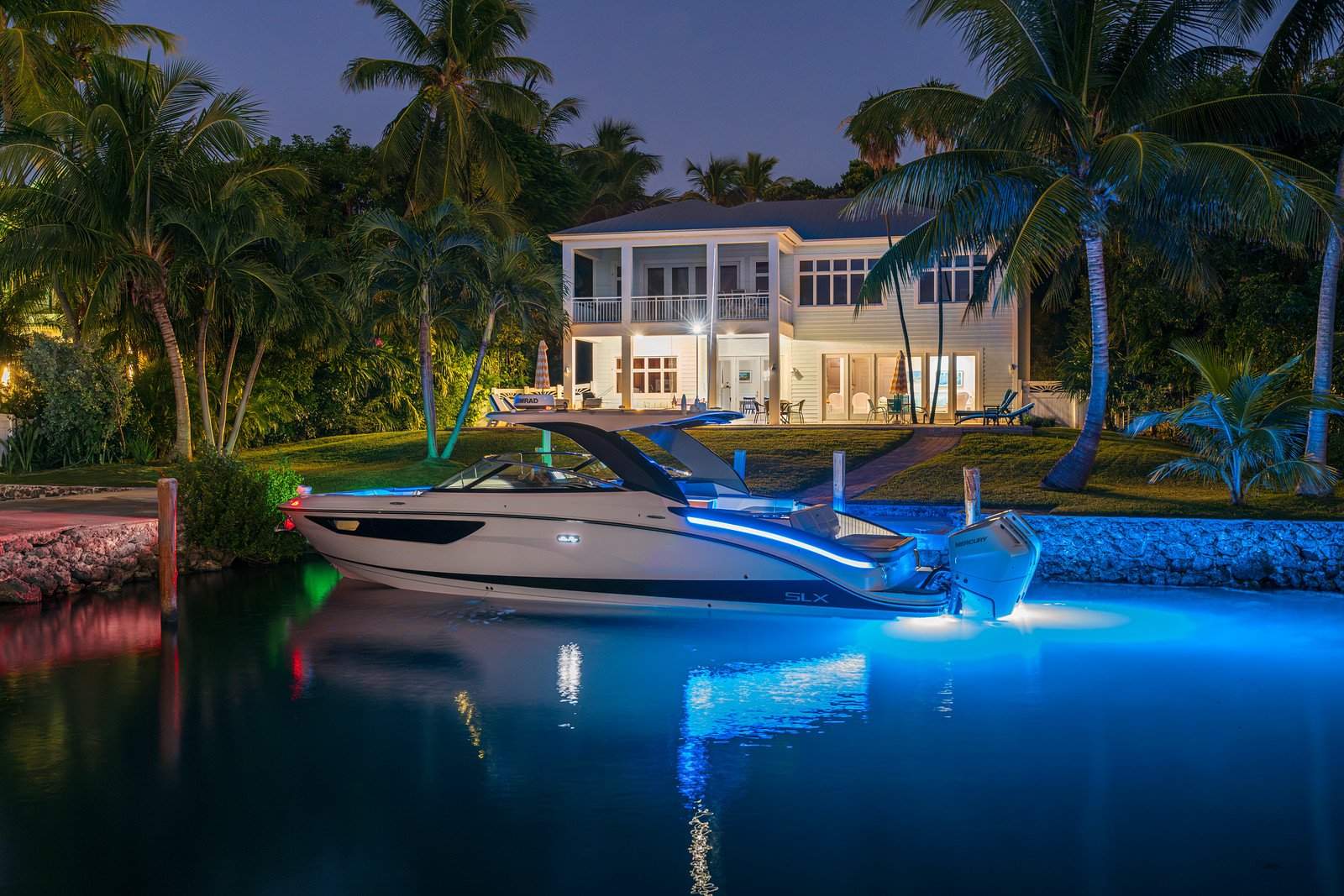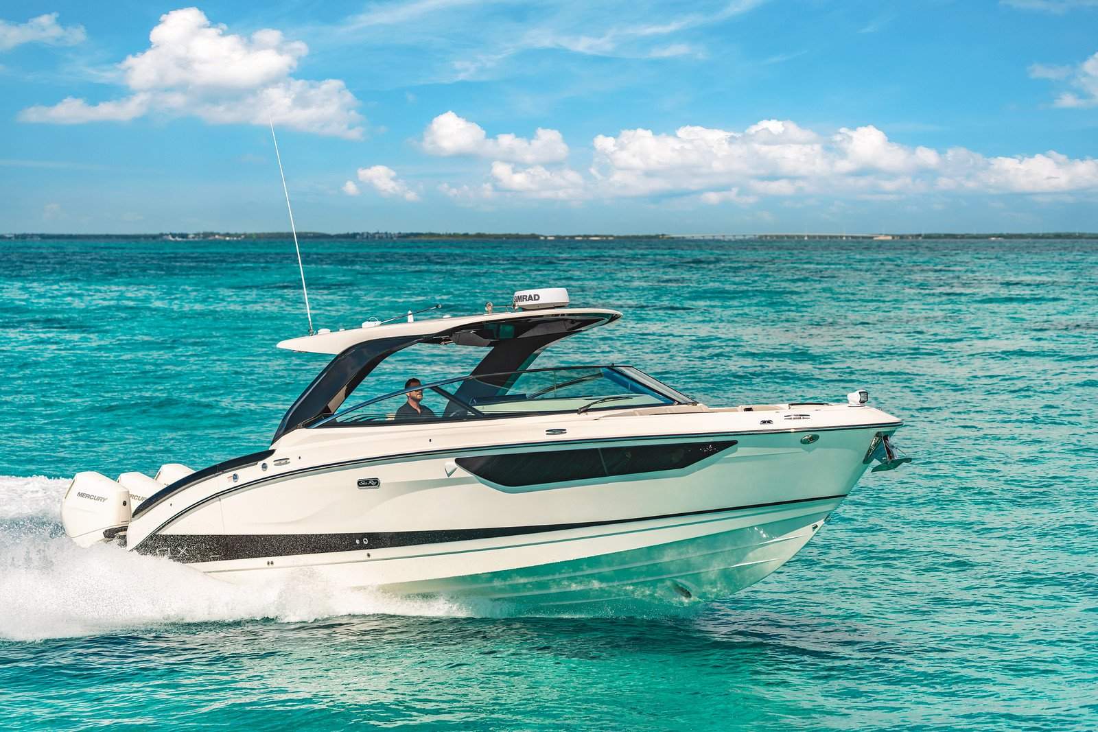 The SLX 360 Outboard sets a new benchmark for helm technology, featuring steering wheel-integrated controls, dual Simrad® Ultrawide NSX displays, Optional Fathom® e-Power & gyro stabilization, Pro Control auto-leveling, and premium Fusion® Apollo audio. Every feature exists to heighten confidence, mastery, and the luxury of effortless command.
