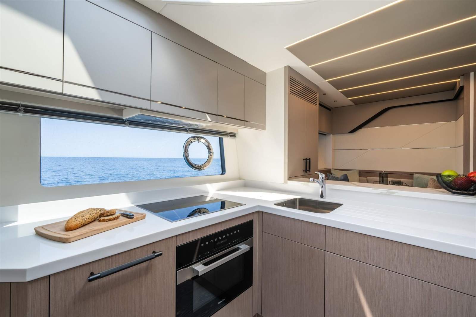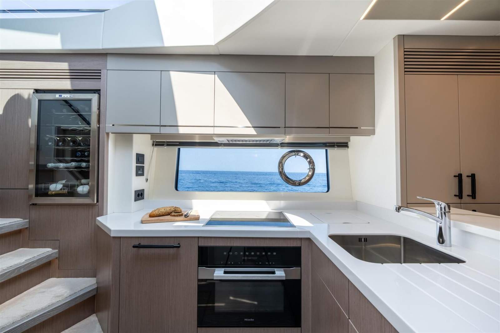 The lower deck arrangement offers spacious accommodation for up to eight guests and two crew. A full-beam master cabin with dressing table fitted with storage, a chaise longue and plenty of additional wardrobe space. All three guest suites come with an en suite, and access to a shared day head is available from the lower hallway. The fully-fitted lower galley and dining space offer a social zone for intimate entertaining. Given the breadth of entertainment spaces on offer, spacious cabins and powerful sea-keeping, the 75 Sport Yacht promises to deliver an exceptional owner experience.