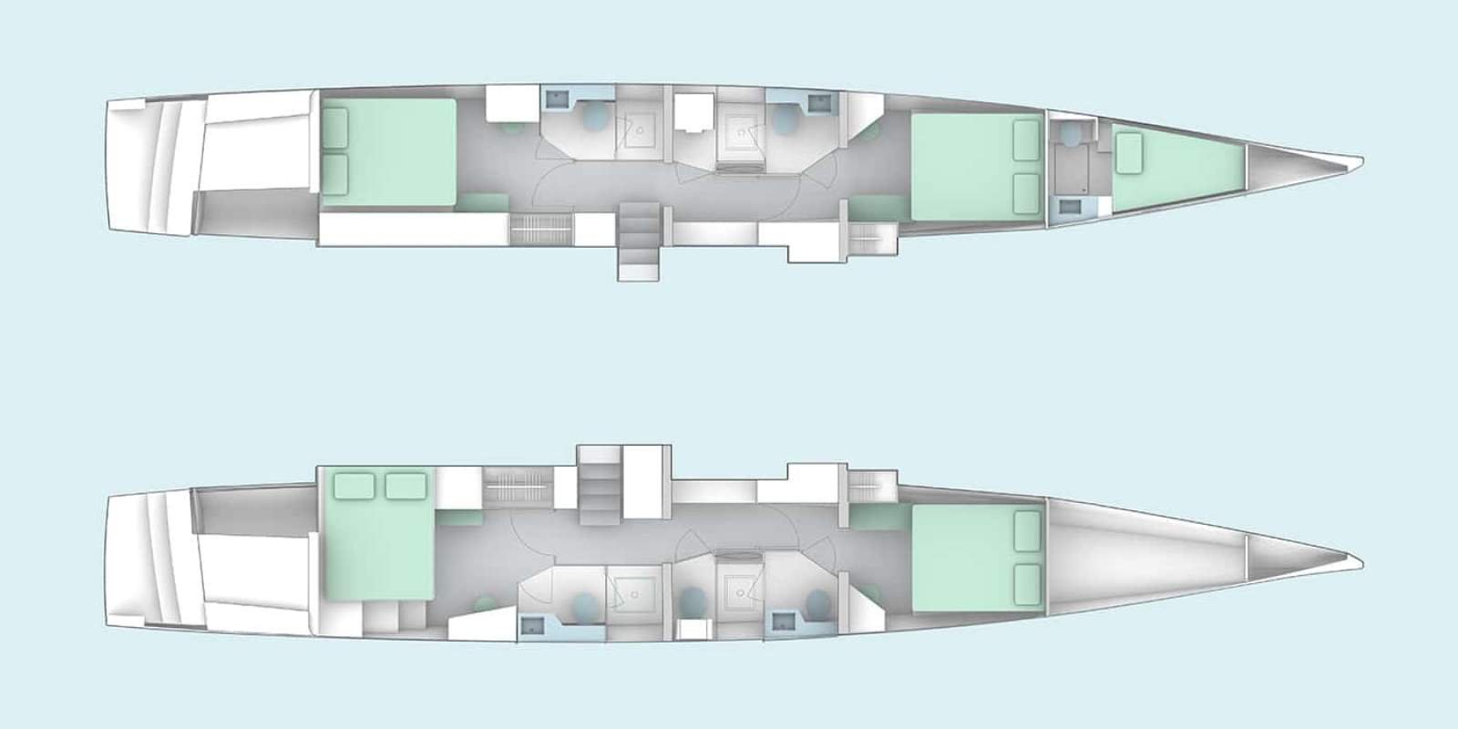 Combining speed, fluidity, and ultimate comfort, this great bluewater unit is designed to stretch the miles and carry you to the four corners of the globe. Its balanced sail plan is easily managed in duo or with full crew from the centralized forward cockpit. And when voyaging with professional crew, each member enjoys a dedicated living space -- preserving privacy and serenity on long passages.