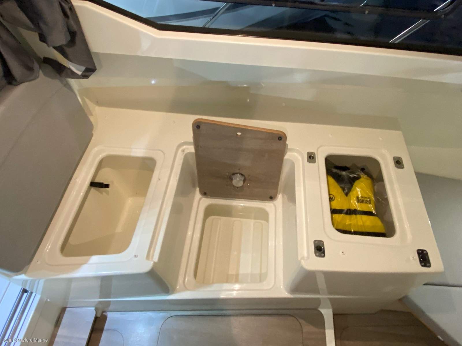 Teak cockpit table - Upper and lower cabin curtains (Ideal for moored boats) -12v 50l upright refrigerator