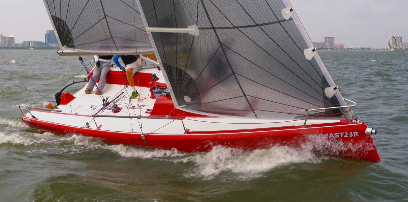 The 23R is very well behaved, perfectly balanced and forgiving. Hull form stability is high and the composite keel fin with lead torpedo offers the best possible righting moment.