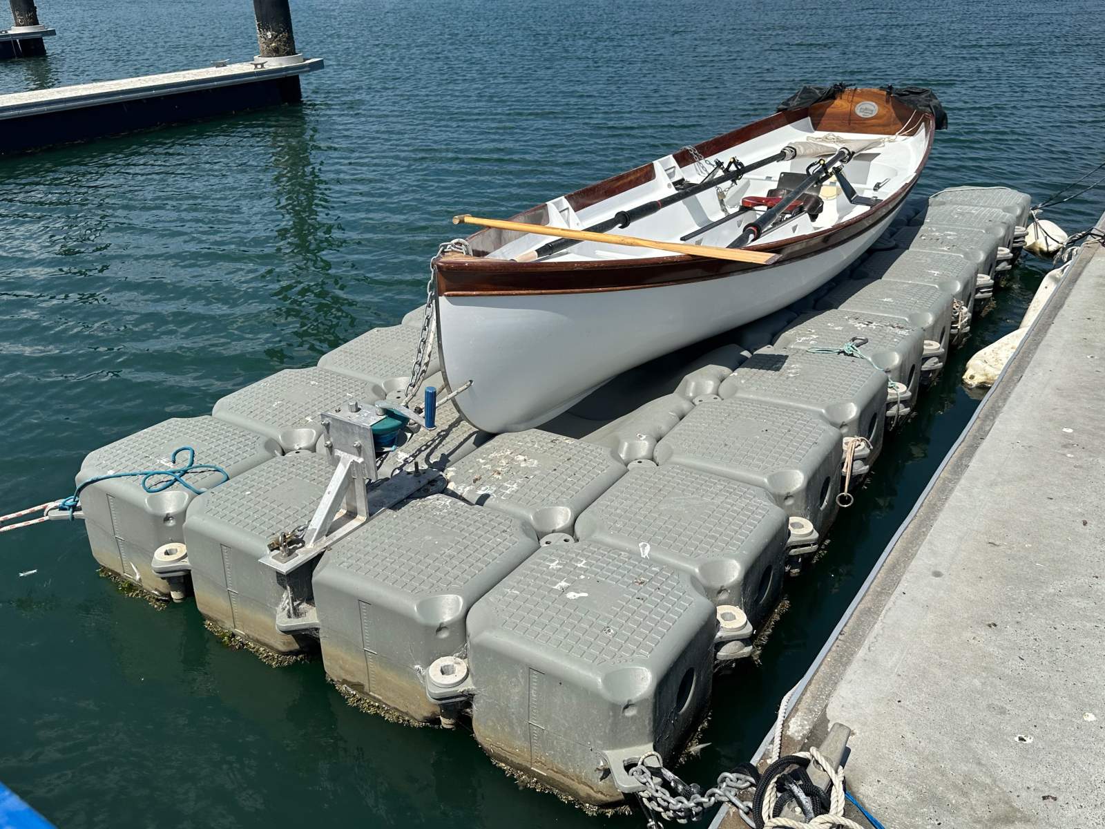 Polly dock with winch perfect for jet ski's small tinnie or the beautiful Whitehall 14 Open water rowing skiff pictured and also for sale. This modular system is designed in a way, you can add blocks or subtract blocks to suit your needs. They are a stable system that you can walk on making it easy to work on your boat or launch and recover. They are also the perfect solution to protect your boat out of the water. So whether you currently have a dock you wish to extend or you are looking at a way of making your time on the water more fun and affordable this could be the perfect solution located in Port Adelaide give me a call to organise a time to view open to offers the owner would like a quick sale to make way for a new boat