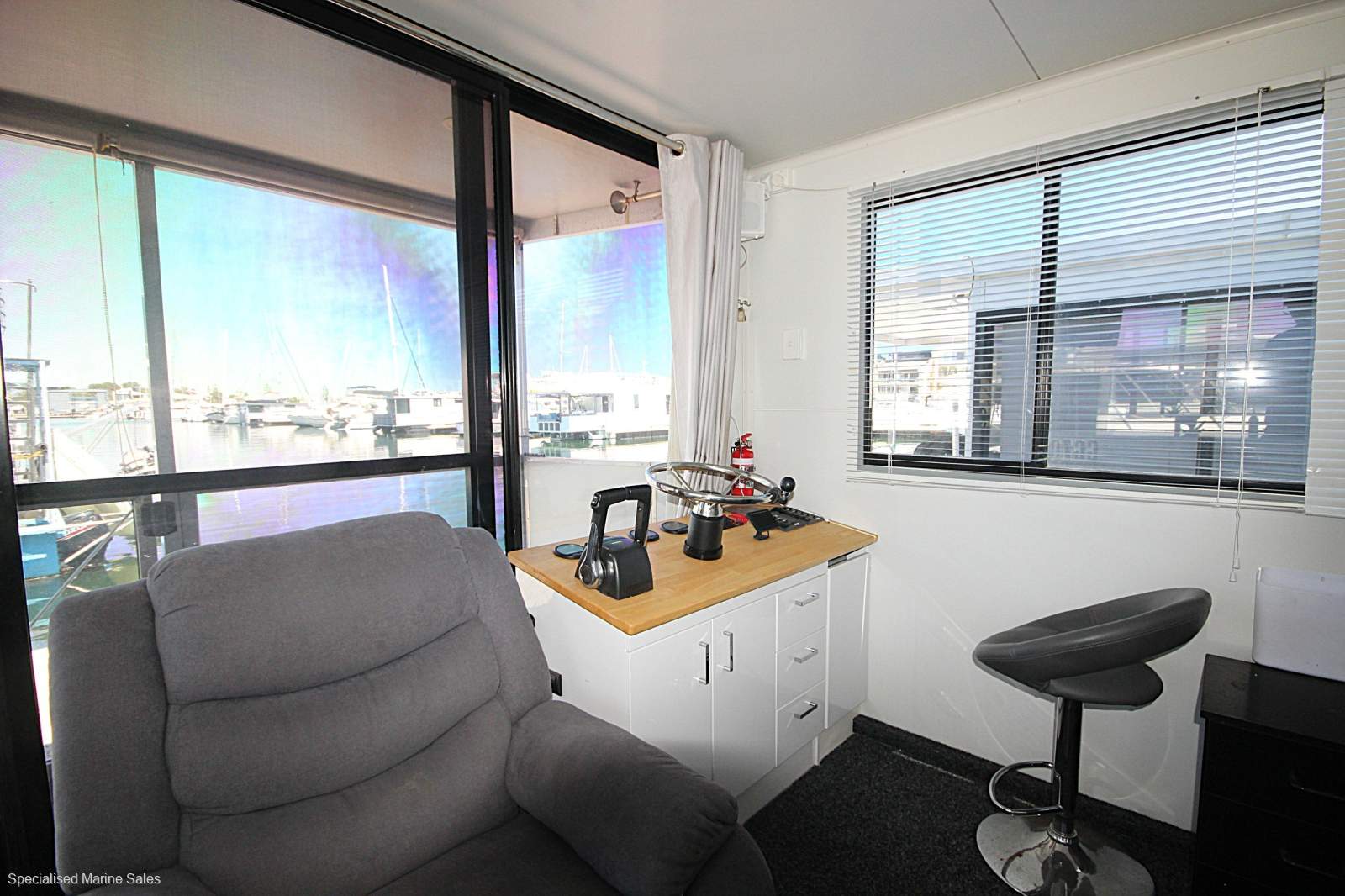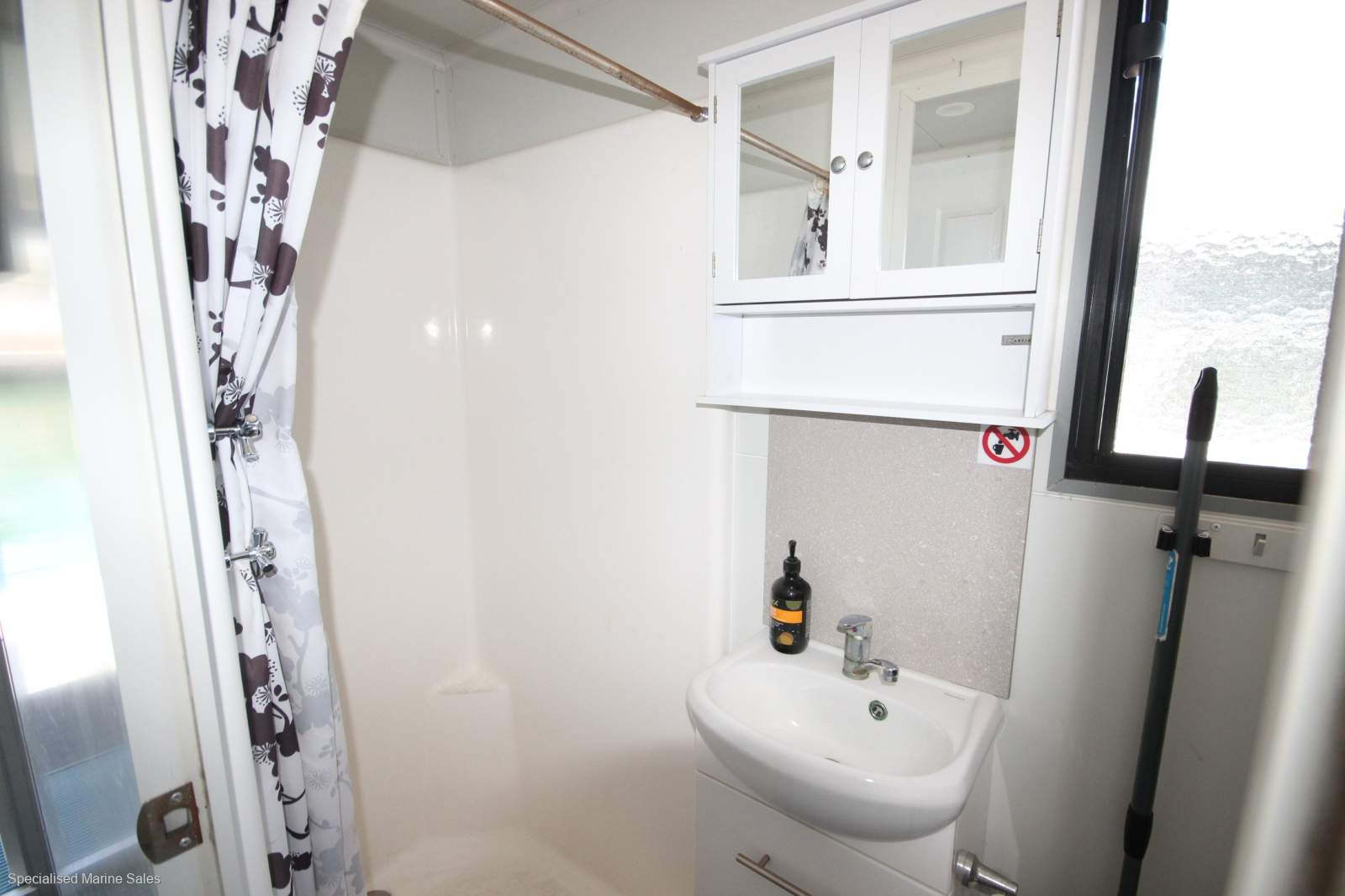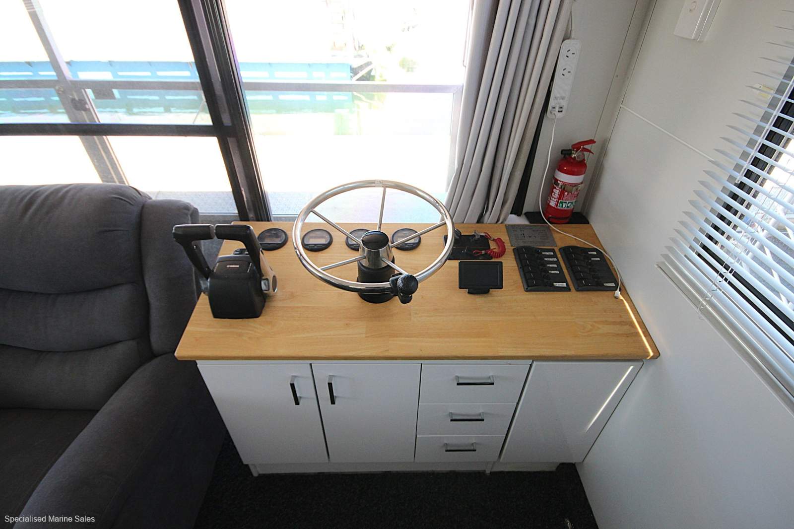 Powered by a pair of Yamaha 25 Hp hi thrust four stroke outboards with hydraulic steering and very low hours she gets around the local waterways in comfort with all the power you need to berth her and navigate the Murray river.