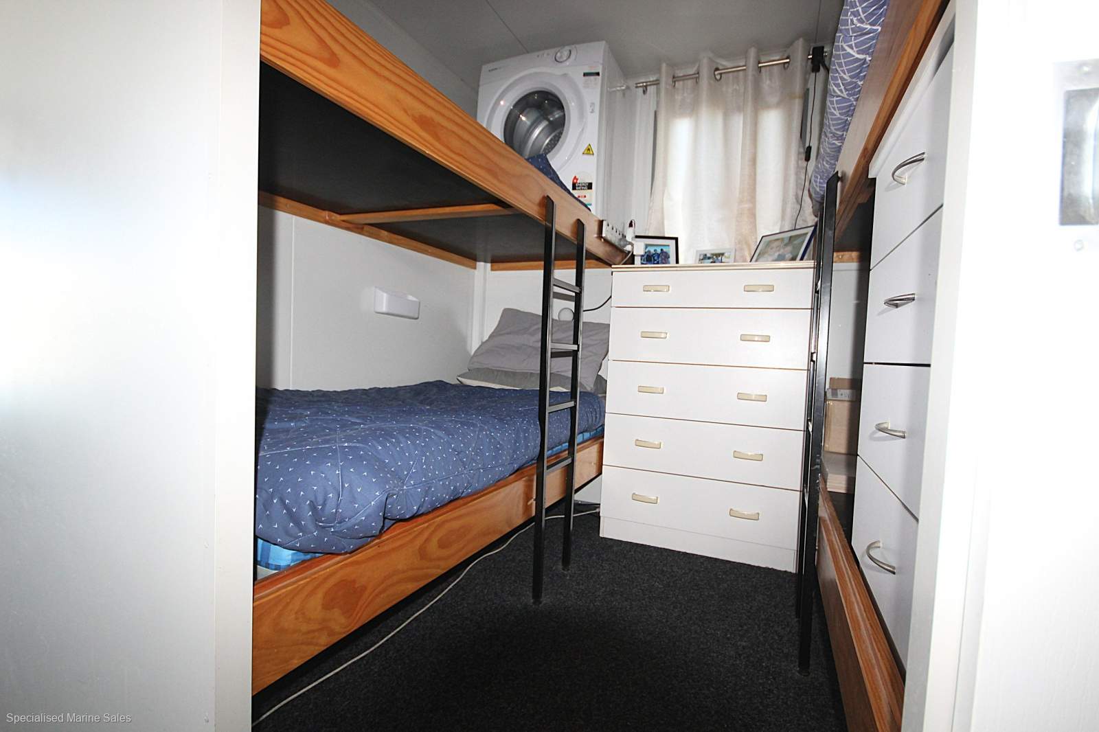 Accommodation for the whole family with a large aft master cabin complete with queen sized berth, a bunk room to the Starboard side with twin bunks currently being used as storage and two berths aft above the engine boxes for the kids friends to spend the night. You have 8 berths available if required.