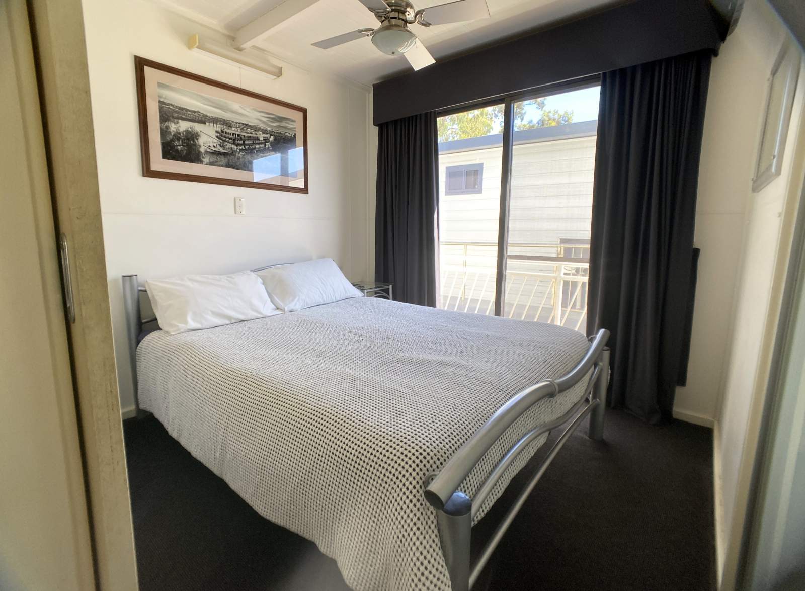 Accommodation is generous and private, with five walk-around queen-size bedrooms. Each cabin offers sliding glass door deck access, robes, wall fans and TV entertainment, creating peaceful personal retreats for family and guests alike.