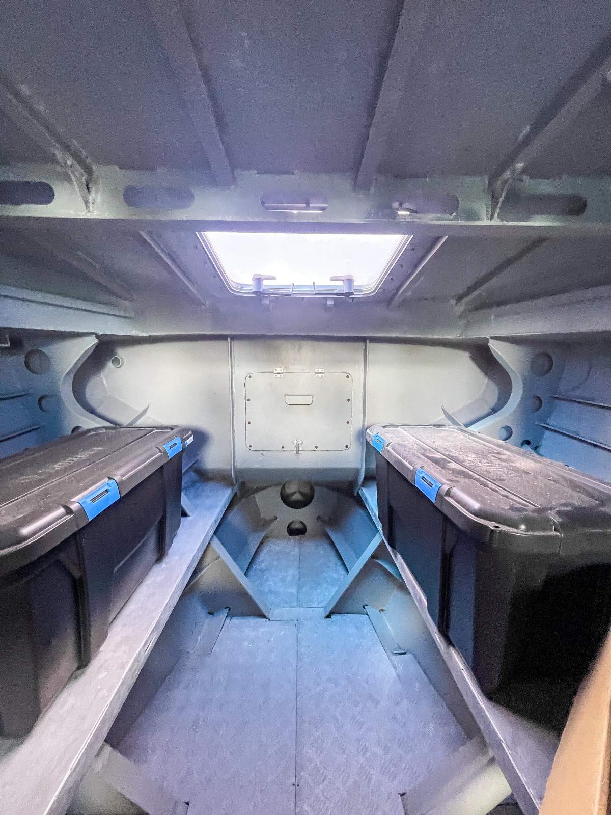 Unobstructed Aft Area: The rear section of the vessel features an open layout, enhancing accessibility for a variety of activities such as fishing, surfing, or diving. The canopy covering the aft deck is in excellent condition, providing shelter and shade. Furthermore, this vessel is equipped with certified lifting points designed for crane operations.