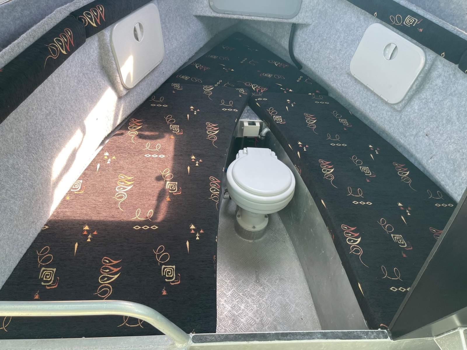 Enclosed Lockable Cabin, Windscreen Wipers, Electric Toilet, Walk Thru Transom with Removeable Doors.