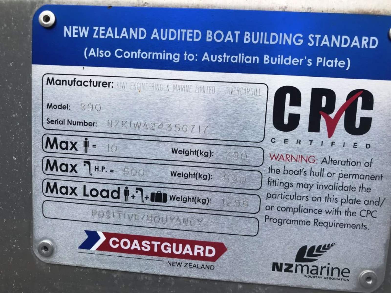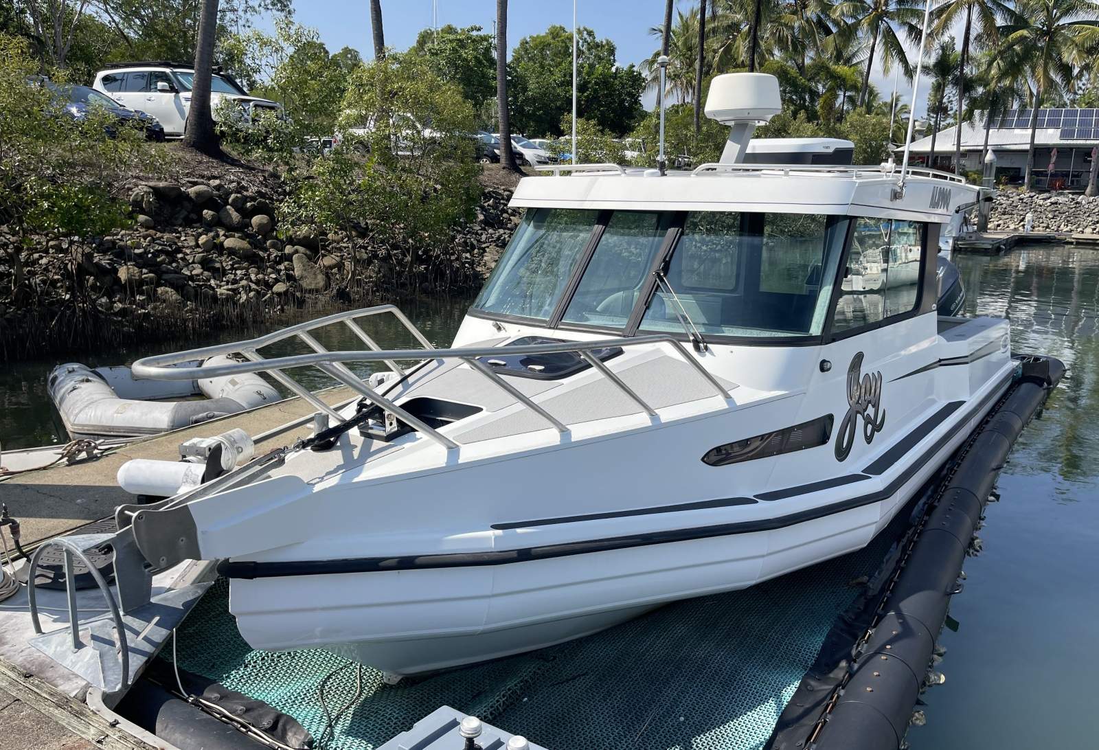LOA 9000mm, Beam Ext 2800mm, Draft less than 600mm, Built on Hushtec technology, 2 Pack Painted Top, Sides & the bottom of the hull for maximum fuel efficiency, Dead Rise 22deg, maximum people capacity 10, Hydraulic Steering, Vibra Stop Engine Mount Stands, 2 x Stainless Steel Propellers, Trim Tabs and Navigation Lights.