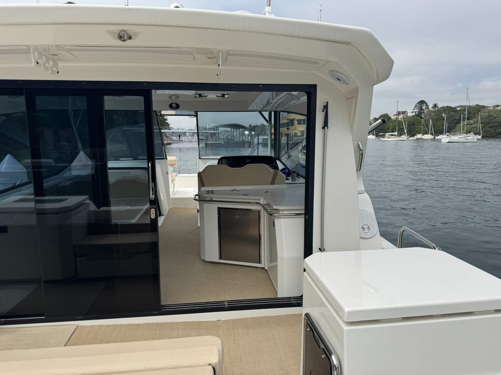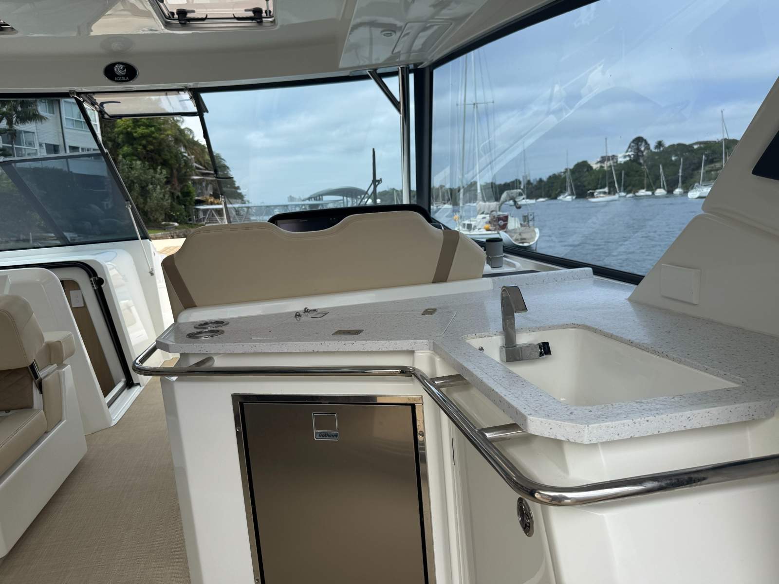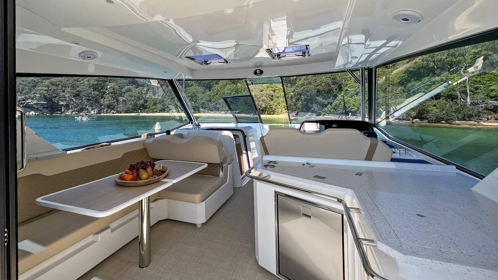 Plus it comes complete with a state-of-the-art RayMarine navigation, SmartCraft engine management, solar package and the brilliant after market champage chute to simplify recycling and end of day cleanup.
